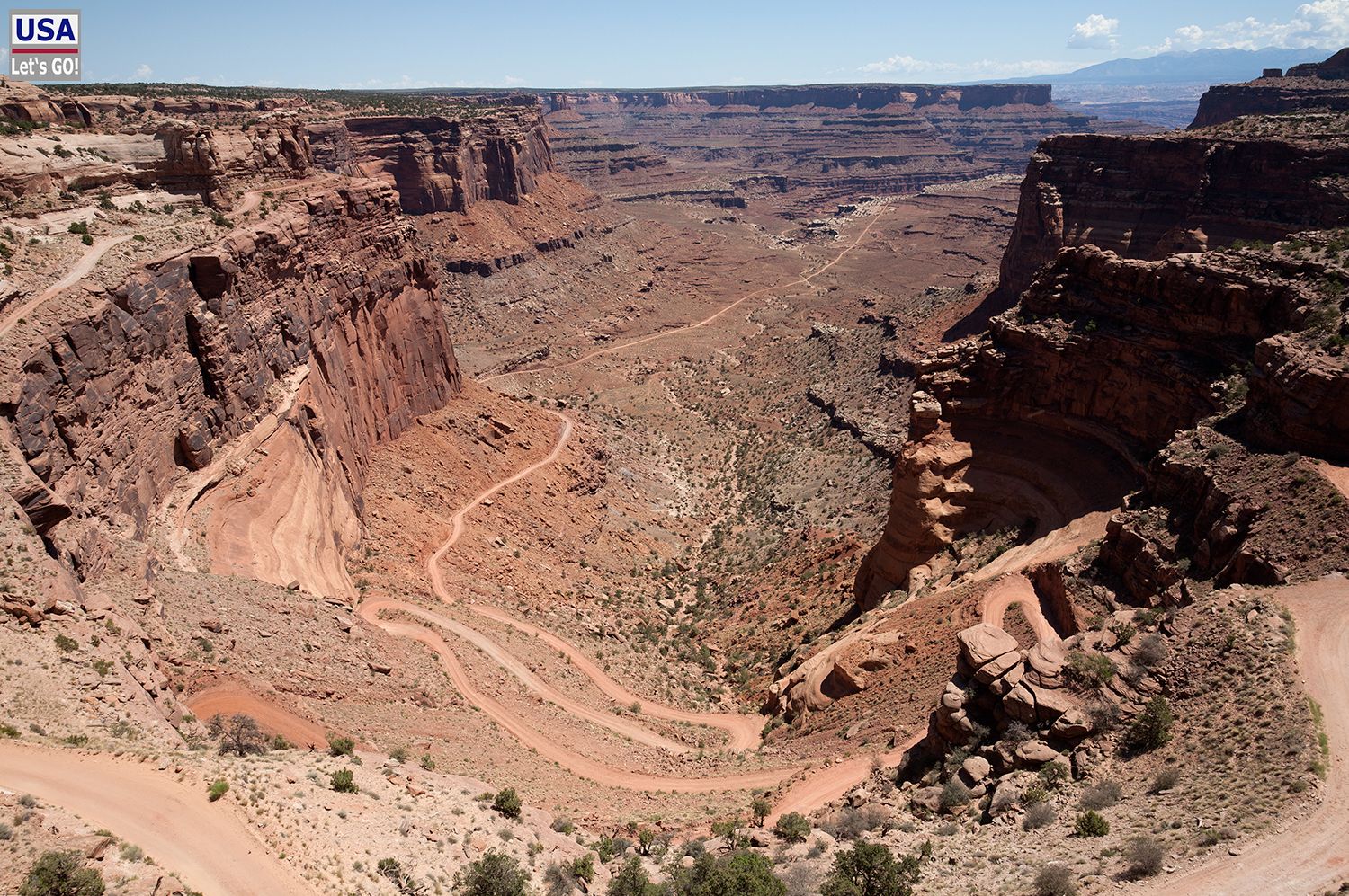 Nun kamen die eigentlichen Highlights dran. Ich fuhr zurück zum Shafer Canyon Overlook und machte dann das, wovon ich schon lange geträumt hatte: ab auf den Shafer Trail.