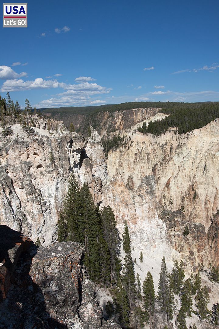 Da wir schon in der Nähe waren, fuhren wir anschließend den North Rim Driver am Grand Canyon of the Yellowstone. Am späten Nachmittag war das Licht sehr gut, und so war es nicht verwunderlich, dass es bei den viewpoints ziemlich voll war. Wir hatten Mühe mit unserem RV einen Parkplatz zu finden.