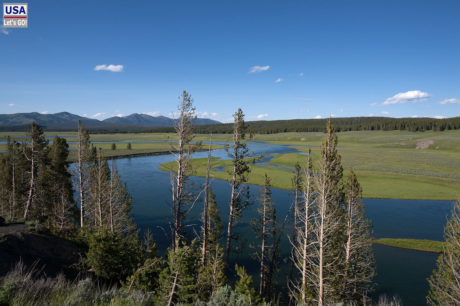 Der Yellowstone River floss gemächlich durch das liebliche Hayden Valley. Ein atemberaubend schöner Anblick.