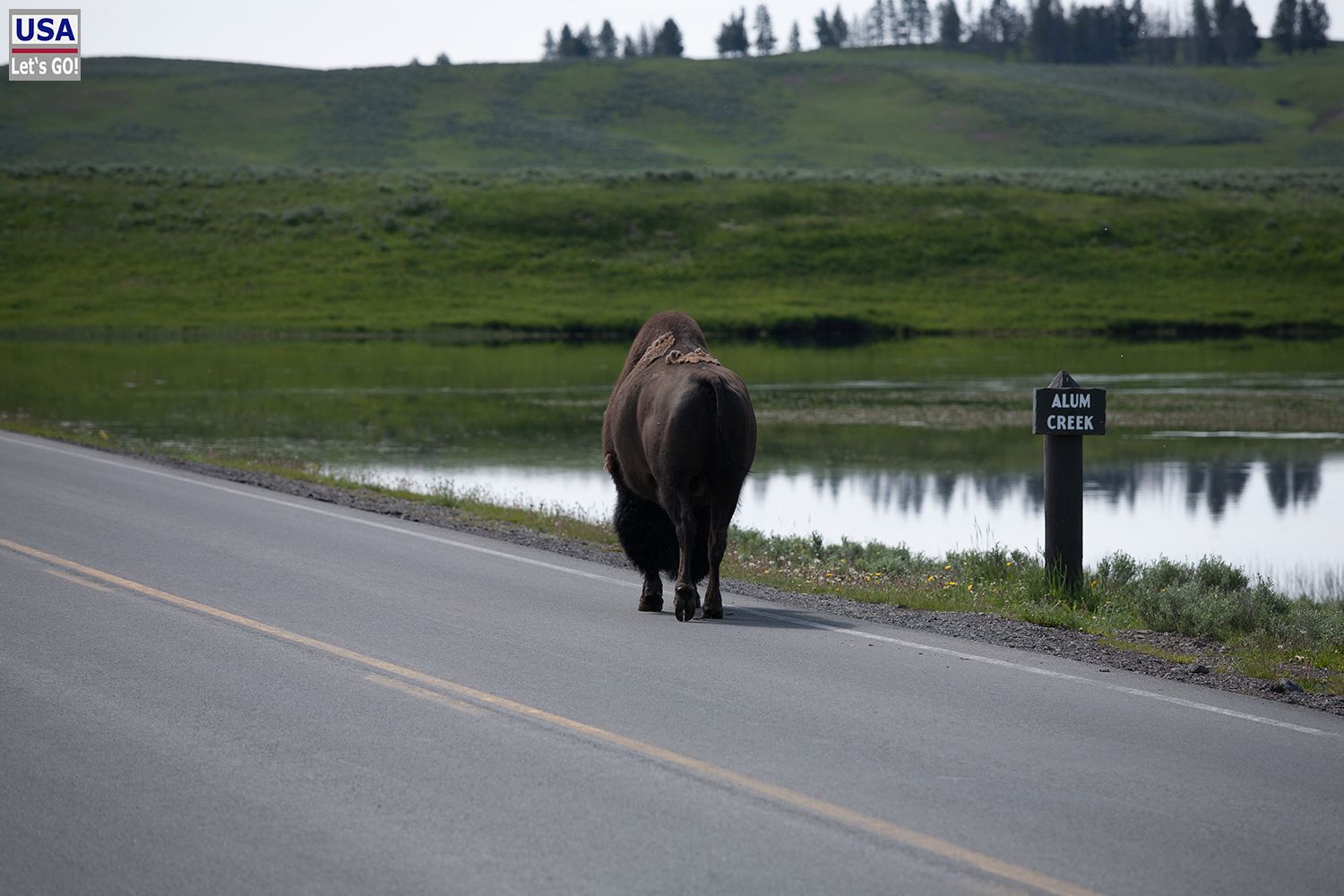 Auf dem weiteren Weg Richtung Norden gab es in Höhe des Alum Creek einen kleinen Verkehrsstau. Ein nicht ungewöhnliches Bild im Yellowstone NP: Bisons kreuzen die Fahrbahn, dumme Touristen blockieren die ganze Straße, auf der Jagd nach dem besten Foto nähern sich manche Rindviecher den Bisons so nah, dass sie attackiert werden usw. usf.