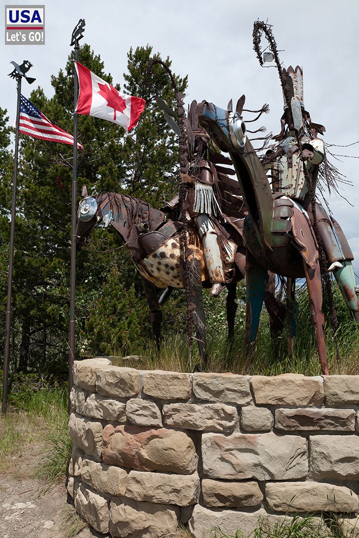 Als wir die Grenze zur Blackfeet Reservation kreuzten, wurden wir von einer Statue mit zwei eisernen Kriegern begrüßt. Die Rohstoffe kommen z.T. von Auto-Wracks und wurden von Stammesmitgliedern und dem Künstler Jay Laber kunstvoll und auf kreative Art und Weise recycled.