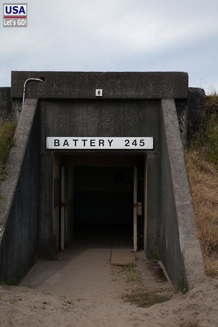 Die Festungsanlagen - in strategisch günstiger Lage an der Mündung des Columbia River in den Pazifik - konnte man auf eigene Faust besuchen. Ich marschierte ein wenig umher, ohne besondere Sehenswürdigkeiten zu entdecken. Battery 245 war ein paar Bilder wert, ohne dass mich die Bunker richtig vom Hocker gerissen hätten. Innen war es ziemlich dunkel und es fehlte jegliche Inneneinrichtung.