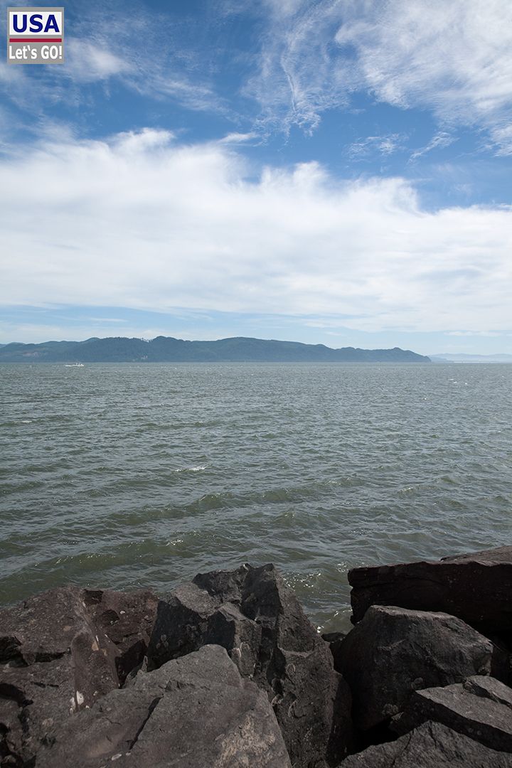 Wesentlich interessanter fand ich das indian long house. Die Lichtstimmung innen war einmalig. Von der Clatsop Indian Village geht der Blick über die Mündung des Columbia Rivers in den Pazifik (s. Bild links).