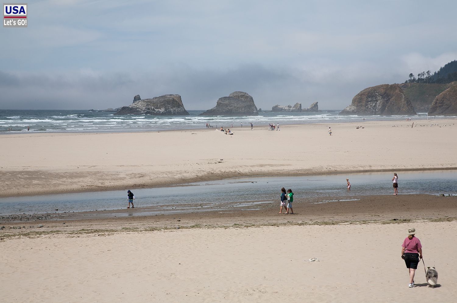 Wir machten uns auf den Weg die Küste runter - mal sehen, wie weit wir heute fahren würden. In Seaside machten wir eine etwas längere Pause und gingen auch an den breiten Strand. Es war aber sehr windig, und der Sand pfiff uns um die Ohren, sodass wir uns rechts bald wieder ins Wohnmobil verzogen und Strand gegen einen Einkaufsbummel in den Factory Shops in Seaside eintauschten.