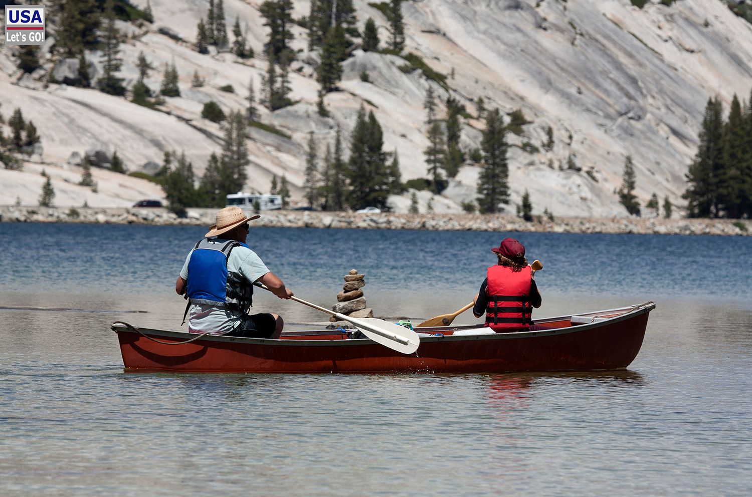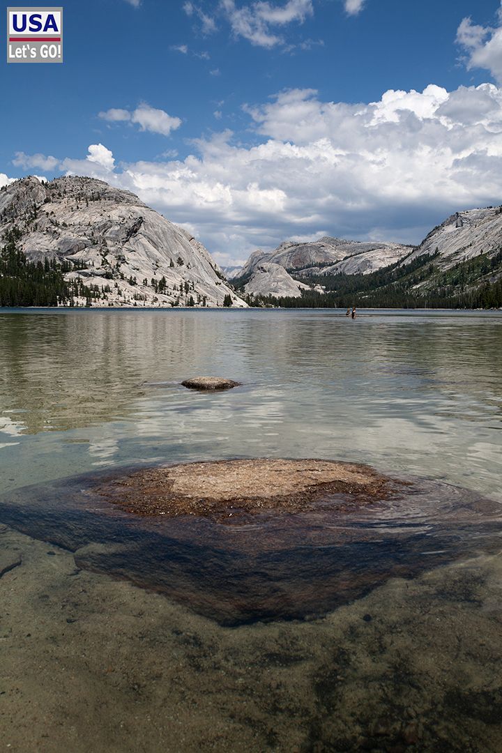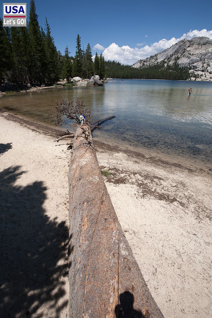 Schiff Ahoi! Sogar baden kann man im Tenaya Lake, wie ich zwei Jahre zuvor bei einem unfreiwilligen Eintauchen feststellen durfte. So kalt ist das Wasser gar nicht, da der See in Ufernähe relativ flach ist.
