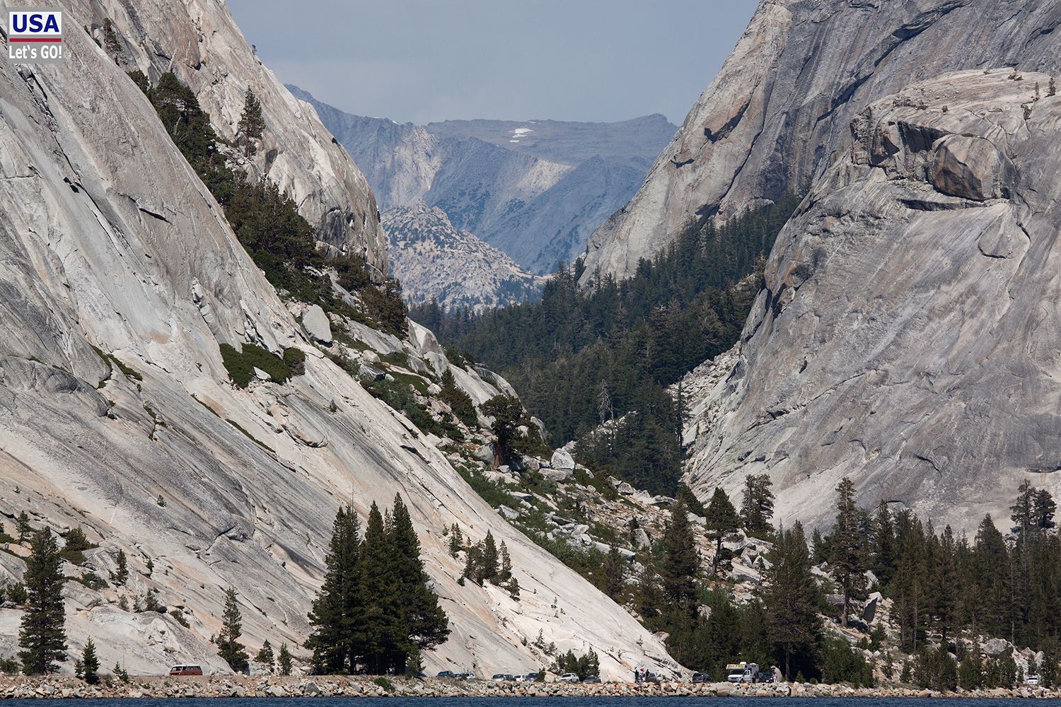 Leider konnten wir nicht ewig am Tenaya Lake rumfläzen, sondern mussten an den weiten Weg denken, den wir heute noch zurückzulegen hatten. Wir brachen unsere Zelte ab und fuhren über die Tioga Pass Road weiter nach Westen - San Francisco entgegen.