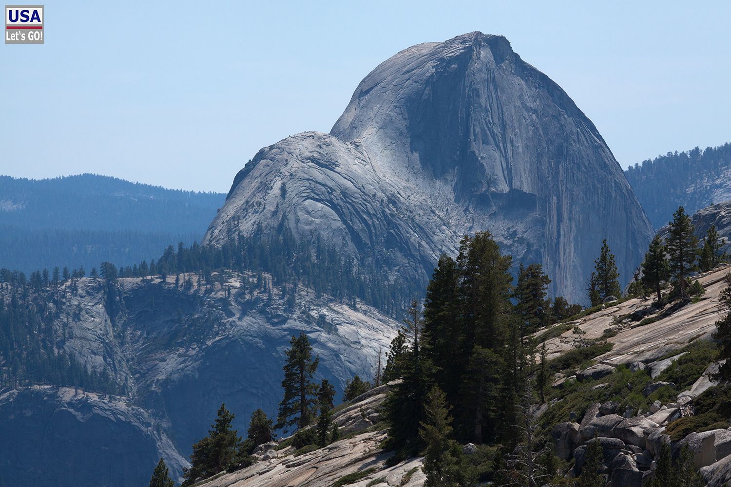 Am Olmsted Point hielten wir kurz an und ich machte ein paar Abschiedsbilder vom Yosemite Nationalpark. Vor uns lag der Half Dome. Ob ich da wohl jemals hochkomme? Mit zunehmendem Alter dürfte der Weg hinauf nicht einfacher werden, aber das ist ein anderes Thema.