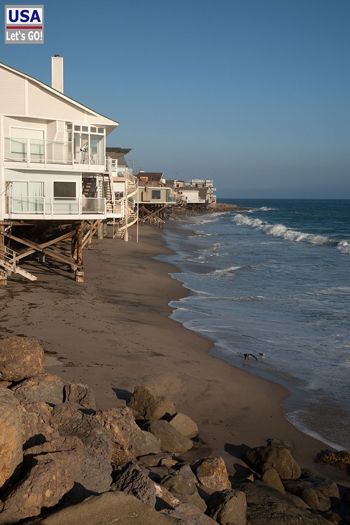 Das perfekte Licht ausnutzend fuhren wir ein Stück die Küste hoch und hielten bei den ersten Strandhäusern von Malibu und später bei der Sycamore Cove (s. Bild rechts).