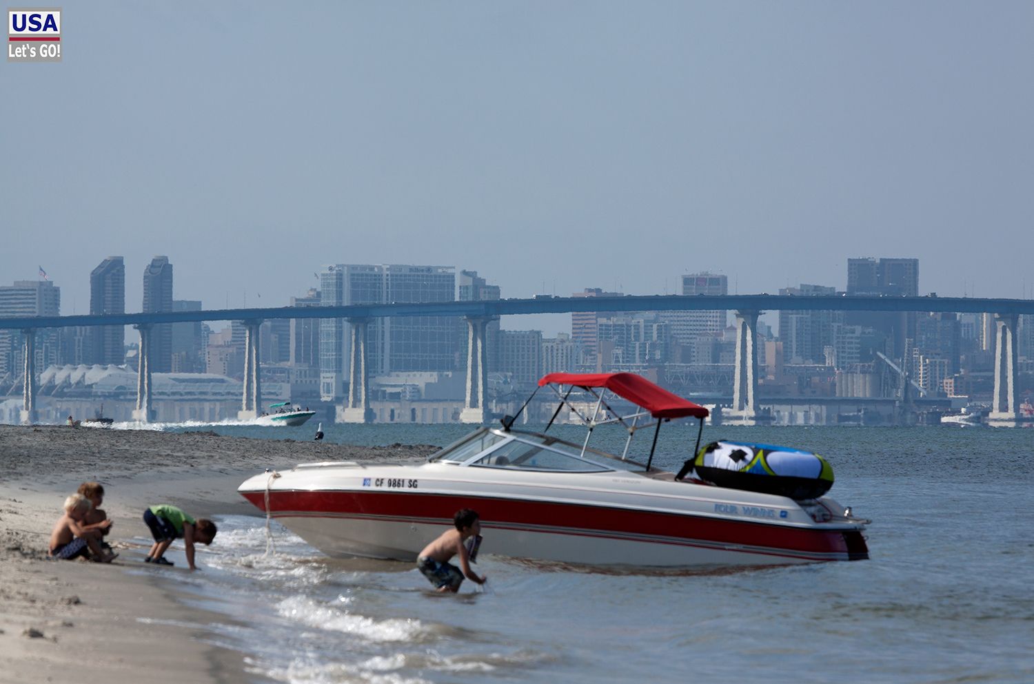 Danach trafen wir eine sich später als ungünstig herausstellende Entscheidung. Wir wählten die ruhige Inlandsseite Coronados in Höhe des Silver Strand Beach als Bade-Location. Der Strand dort war sehr schön und man hatte einen guten Blick auf den Schiffsverkehr in der Bay...