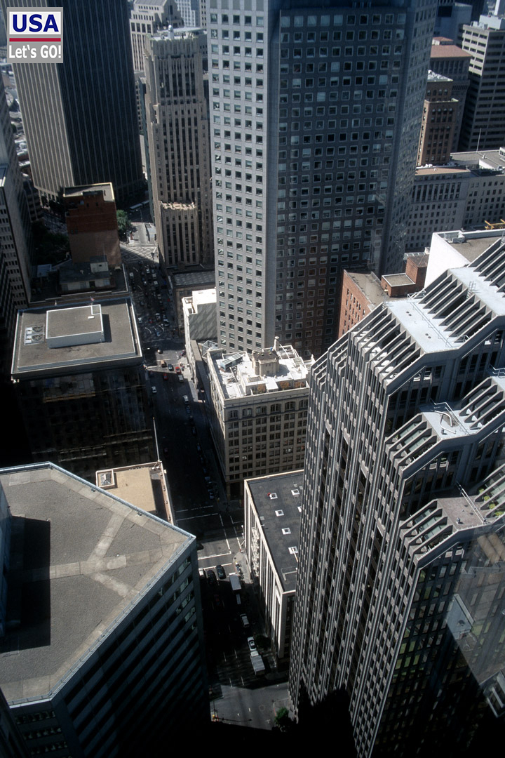 Damals war das Skydeck im Embarcadero Center eine super Location, um San Francisco von oben zu sehen. (Leider wurde die Plattform nach 9/11 geschlossen.) Es war schon gegen Mittag, als wir dort waren und ein paar Bilder mit Seltenheitswert machten.