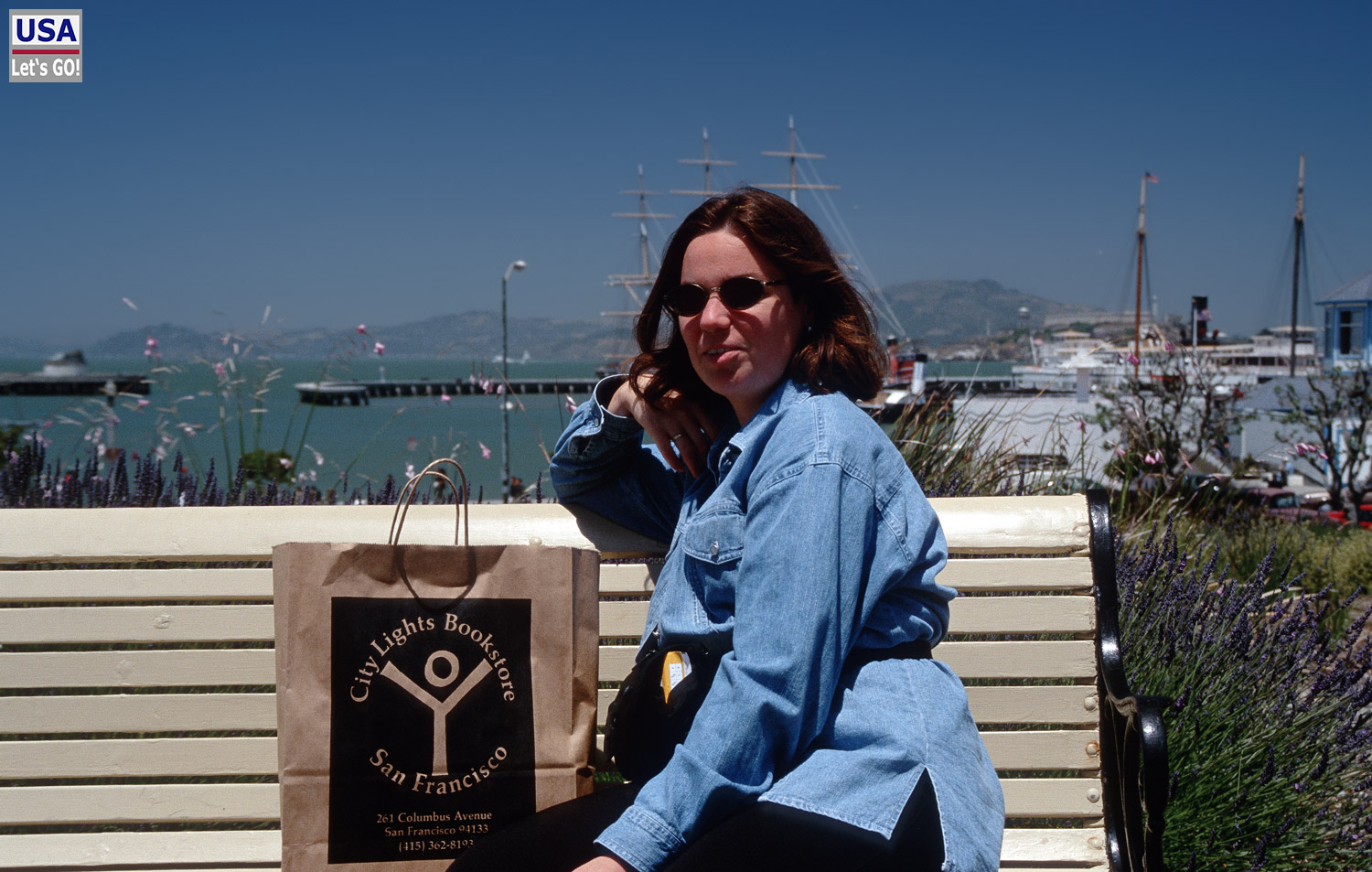 ... und über die Columbus Avenue zu City Lights, wo Anja natürlich nicht mit leeren Händen raus kam. An der Marina warteten wir auf Ralf und André, die pünktlich zum vereinbarten Zeitpunkt auch kamen.