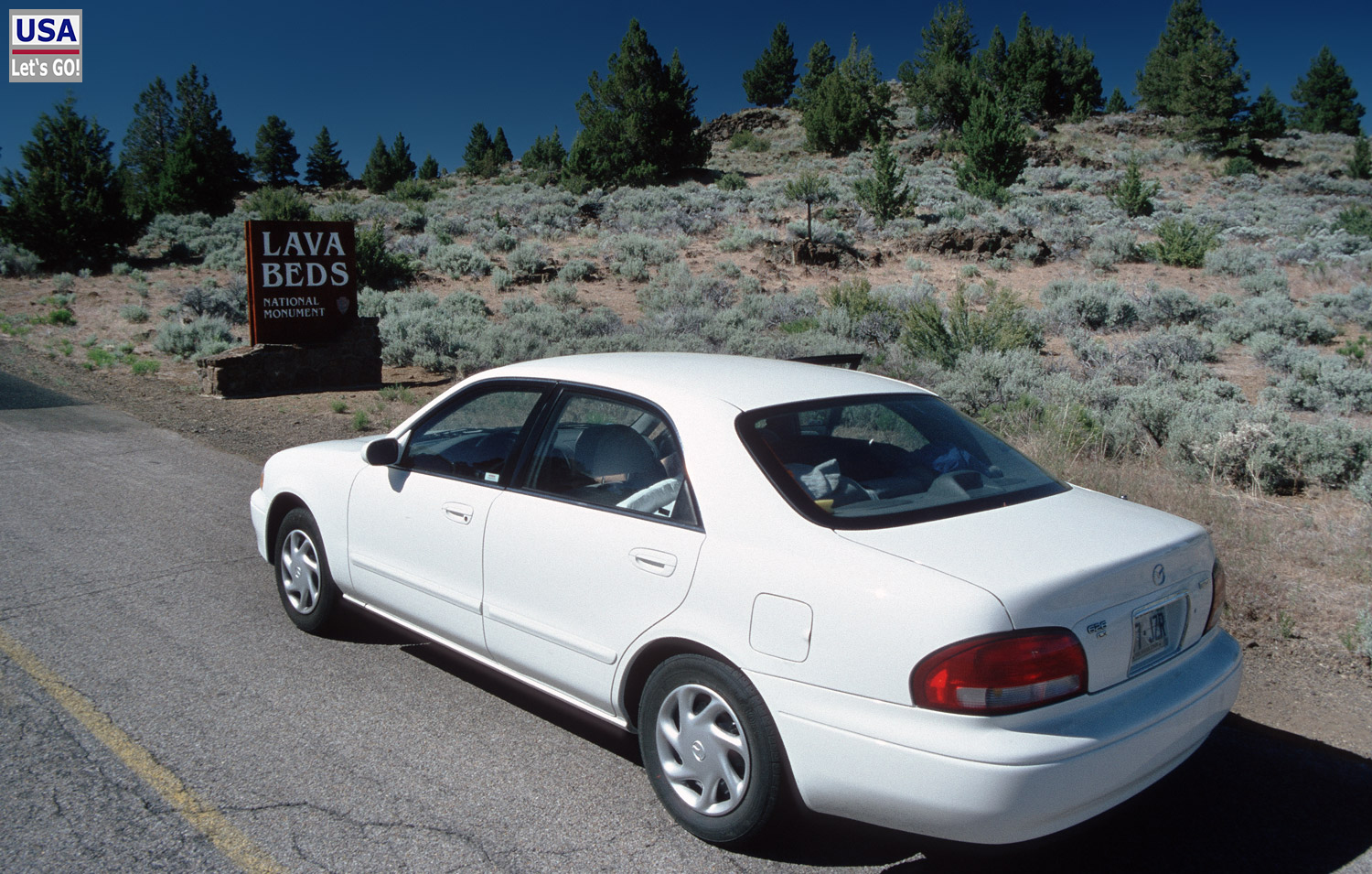 Beinahe hätte besagtes goldfarbenes (!) Auto im Lava Beds NM das Zeitliche gesegnet, als die beiden Crashpiloten auf einer unbefestigten Nebenstraße offenbar die Rally Paris-Dakar nachahmten und die Kiste dabei in die Pampa setzten. Mensch und Maschine blieben aber glücklicherweise heil.