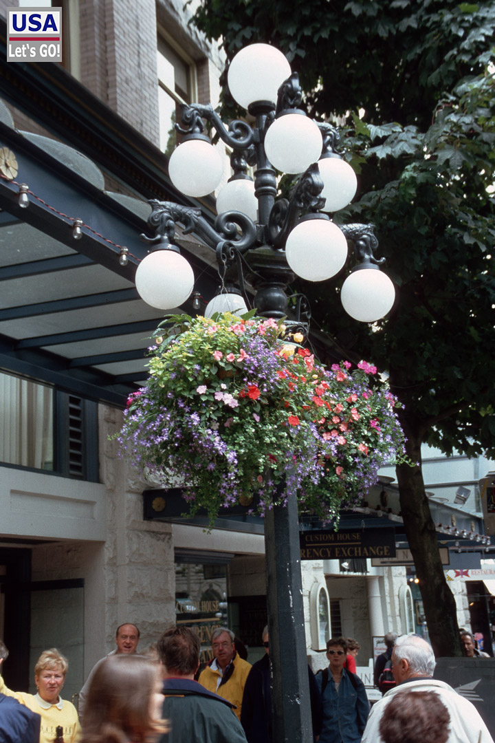 Gastown statteten wir einen Besuch ab, allerdings waren wir wenig beeindruckt. Die historische Dampfuhr, die die wichtigste Sehenswürdigkeit in diesem Viertel ist, haben wir scheinbar verpasst, denn davon existiert kein einziges Bild. Schön fand ich aber den Blumenschmuck an den Straßenlaternen.