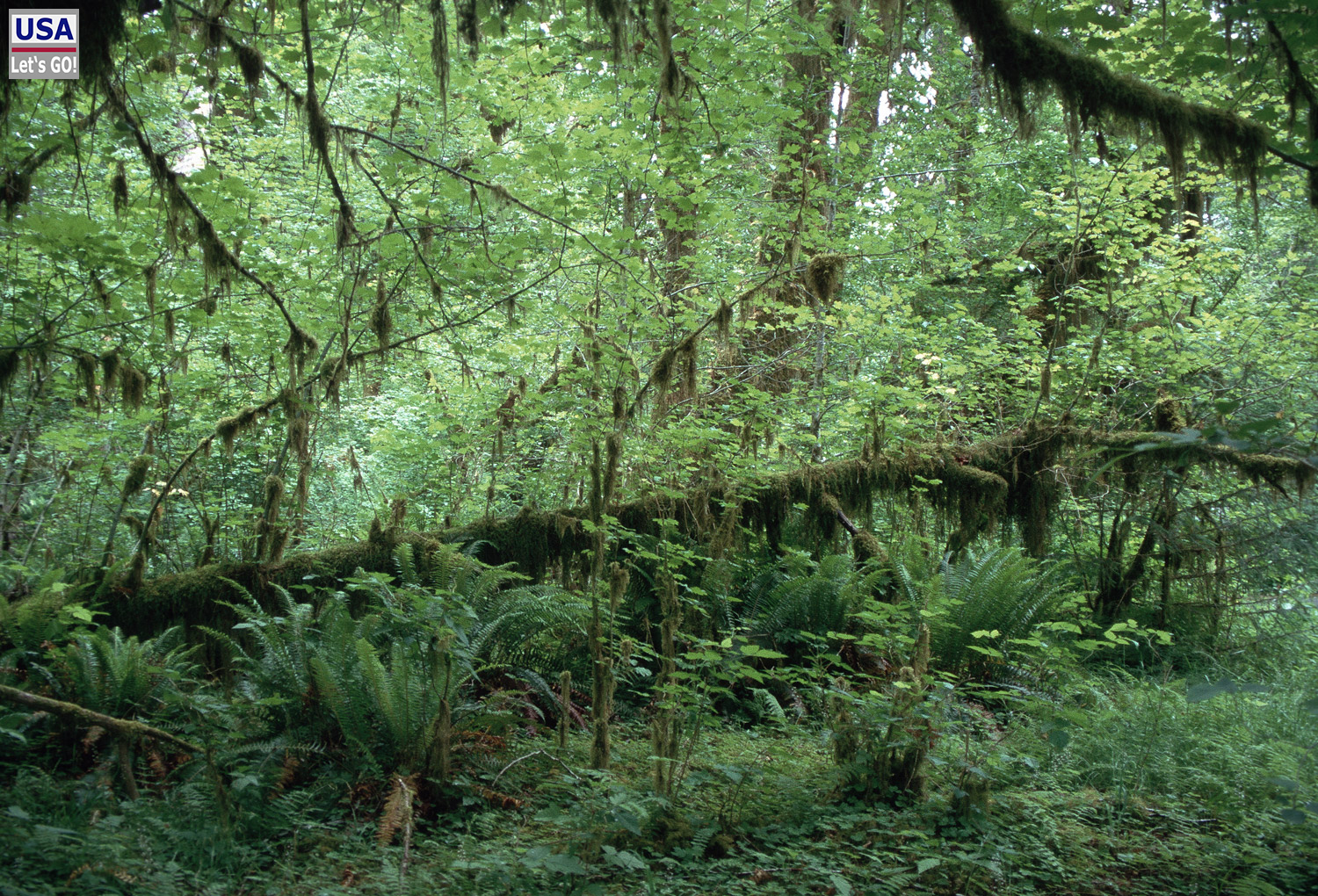 Am nächsten Morgen umkurvten wir die Olympic Peninsula und machten einen Abstecher in den Hoh Rain Forest. Dort mussten wir wenigstens nicht Schnee und Eis befürchten. Der Wald war wie eine grüne Wand. Überall wuchsen Farne, und Moose und Flechten bedeckten die Bäume.