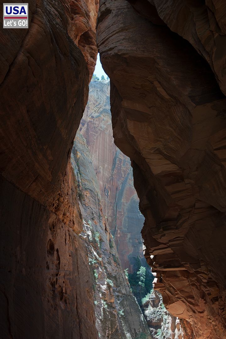 Gut, dass ich wieder relativ früh unterwegs war, sodass der Hinweg zu großen Teilen im Schatten lag. Durch den Hidden Canyon ging es bis hinauf zu einem der schönsten Aussichtspunkte im Westen der USA.