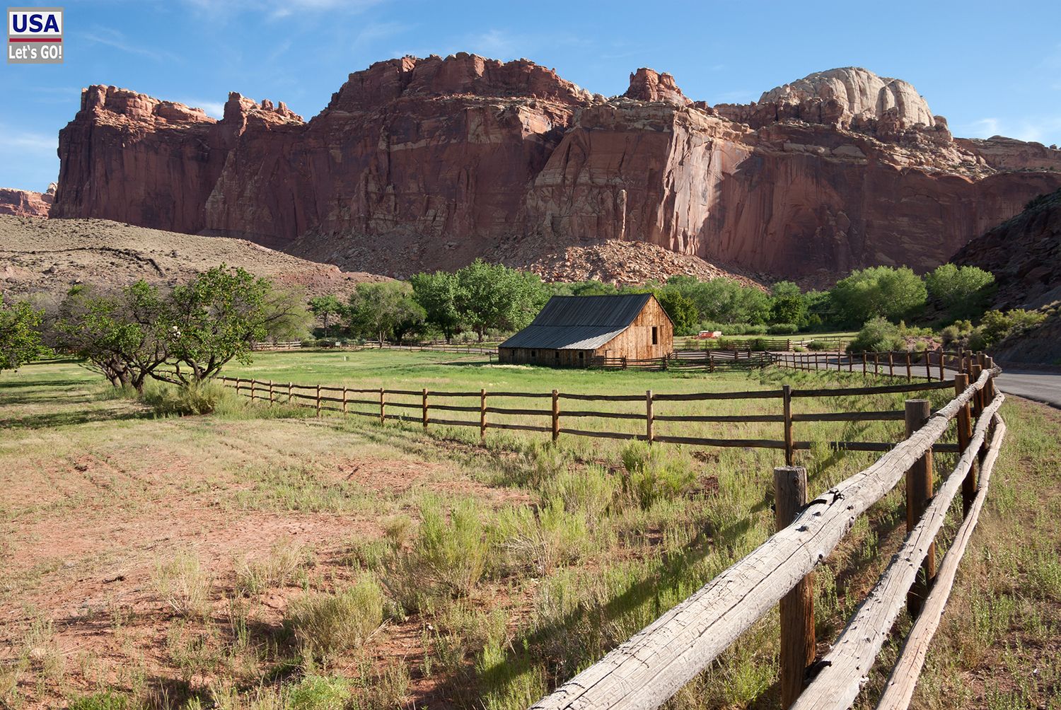 Nach dem Frühstück legte ich los. Der trailhead befindet sich ganz in der Nähe der malerisch gelegenen Fruita Barn.