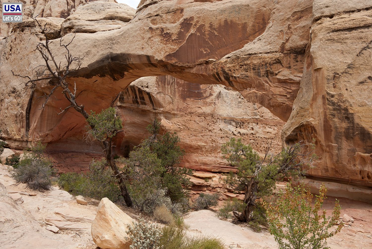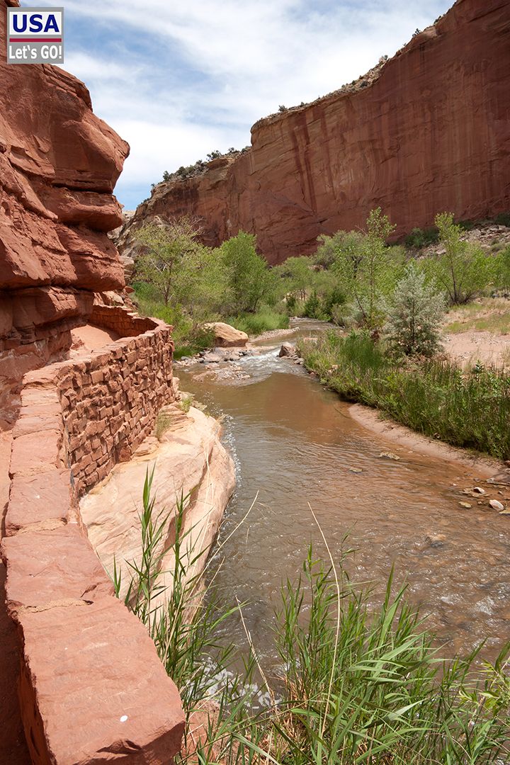 Wir hielten uns dort aber nicht lange auf, da ich unbedingt noch zur Hickman Bridge wandern wollte. Dieser Weg beginnt am Ufer des Fremont Rivers (s. Bild rechts).
