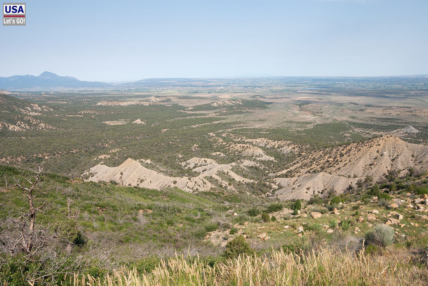 Vor uns lag das im Vergleich zu den benachbarten Trockengebieten Utahs und Arizonas grüne Montezuma Valley mit dem Sleeping Ute Mountain im Hintergrund.