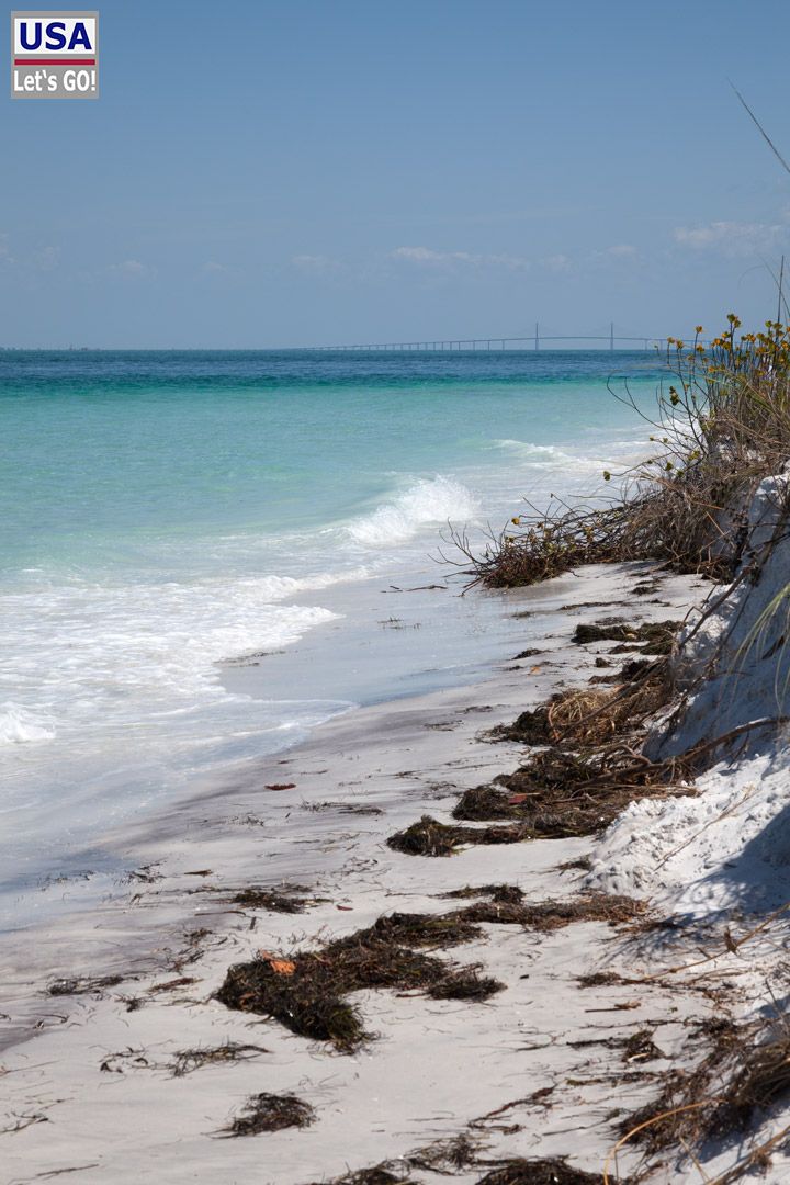 Zunächst kommen wir am Holmes Beach vorbei, der noch nicht soo spektakulär ist. Man hat einen sehr entfernten Blick auf die Sunshine Skyway Bridge, die die Tampa Bay überspannt.