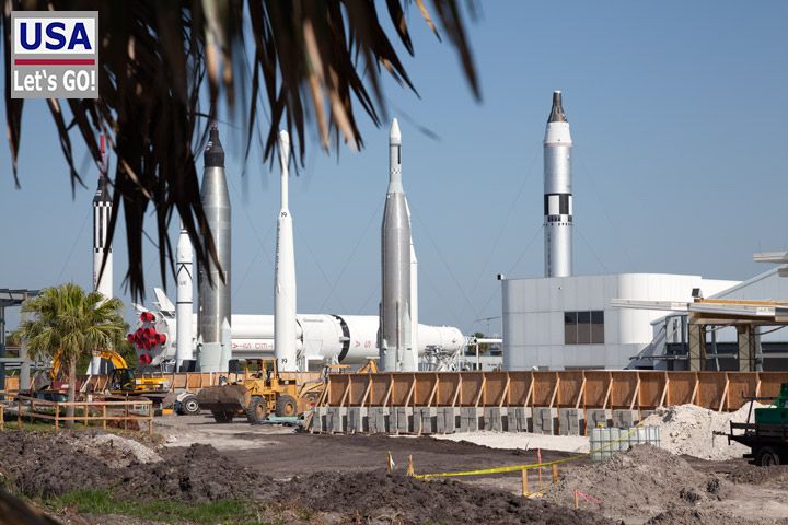 Allerdings spekulieren wir darauf, dass man sich auf eigene Faust auf dem Gelände bewegen darf und dafür weniger bezahlen muss. 1994 war das möglich und man konnte self guided einiges sehen. Es gab z.B. ein kostenloses Museum und draußen konnte man einige Raketen und deren riesige Antriebe bewundern. Genau so etwas haben wir für heute geplant.