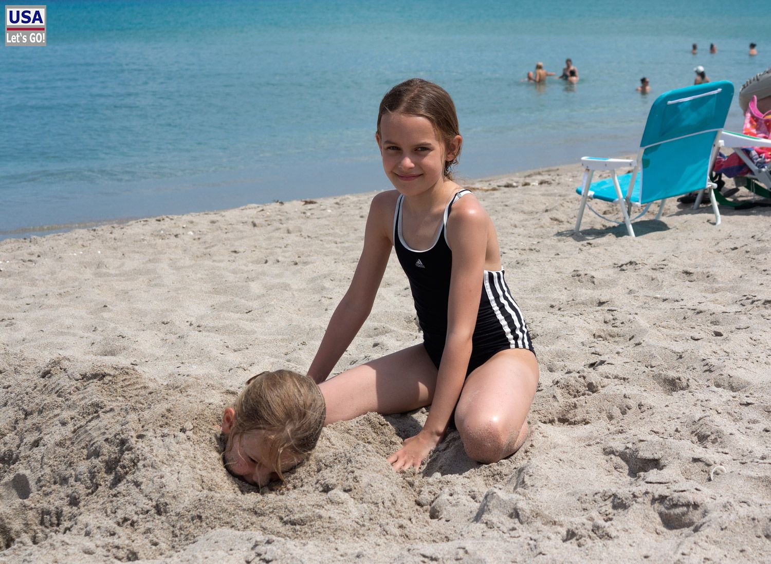 Die Kinder nutzen die Zeit um allen möglichen Blödsinn anzustellen. Gegenseitiges Einbuddeln gehört natürlich auch dazu. Sie sind voll in ihrem Element.