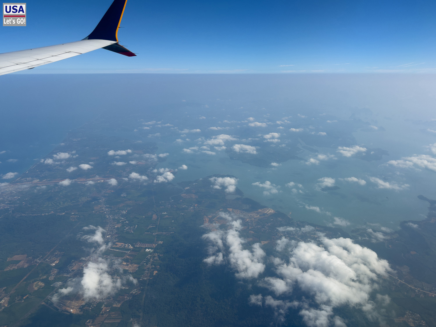 Der Flug nach Phuket geschieht in einem unerquicklichen Dämmerzustand, der leider mit Schlafen nur wenig gemein hat. Immerhin bekomme ich mit, dass wir erst 15 Minuten vor dem Gate rumstehen, dann nochmal 30 Minuten vor der Startbahn. Dann endlich bekommen wir Freigabe zum Start.