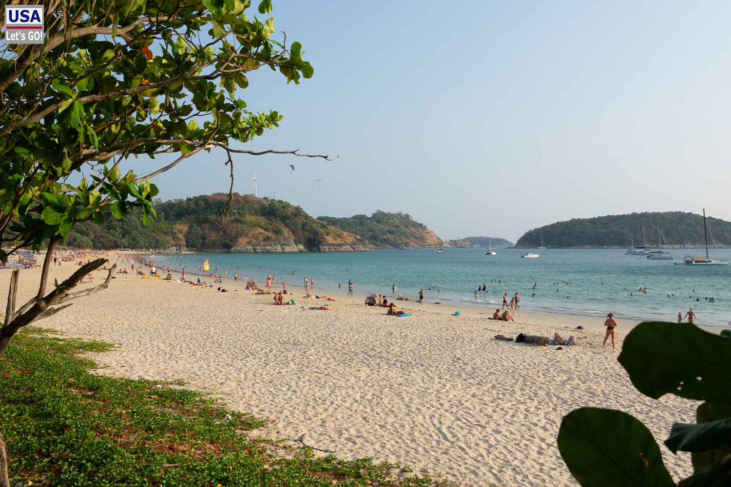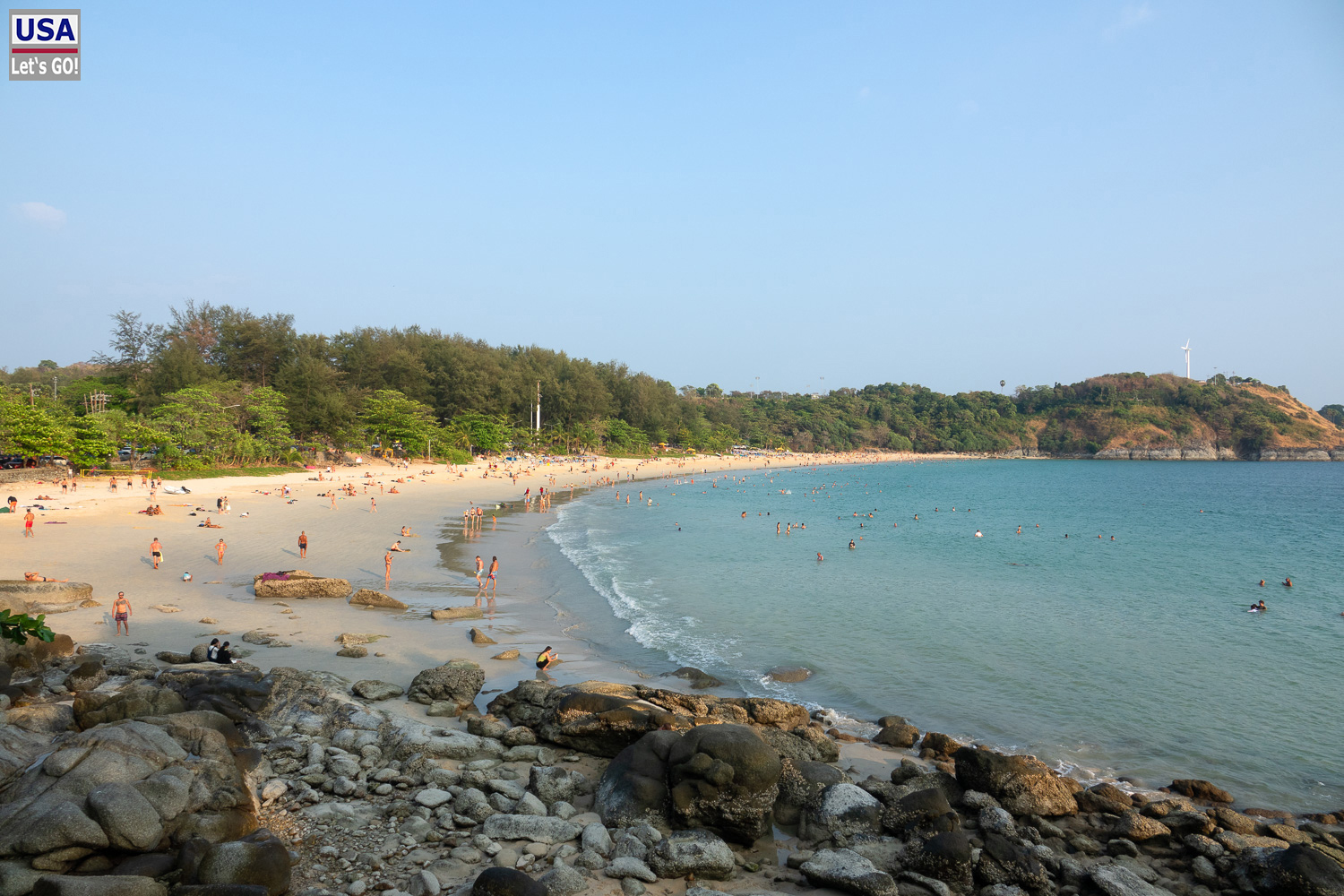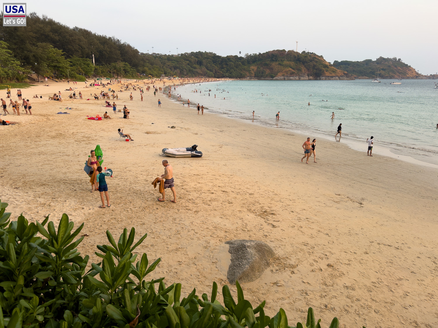 Lange halten wir uns nicht auf, sondern fahren zum Strand: Nai Harn Beach, etwa zwanzig Minuten entfernt.