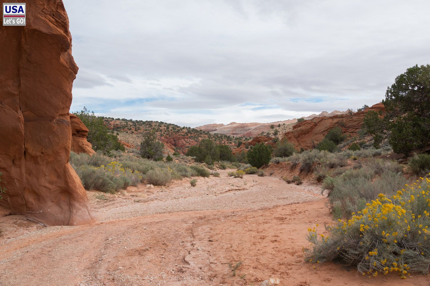Man kann es nicht ändern und ich lande dann doch schon recht früh in Kanab. Einchecken ist natürlich überhaupt noch keine Option, also fahre ich weiter zu meinem nächsten Ziel: Wire Pass Trailhead. Nach den heftigen Regenfällen in der Vorwoche ist die House Rock Valley Road noch feucht, aber gut befahrbar.
