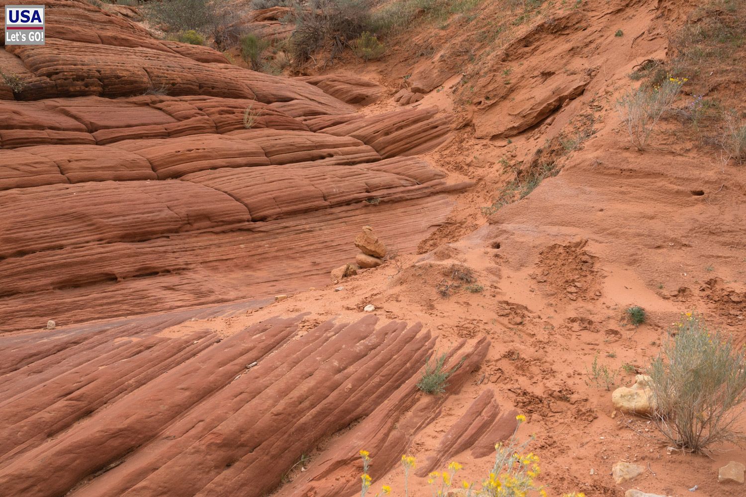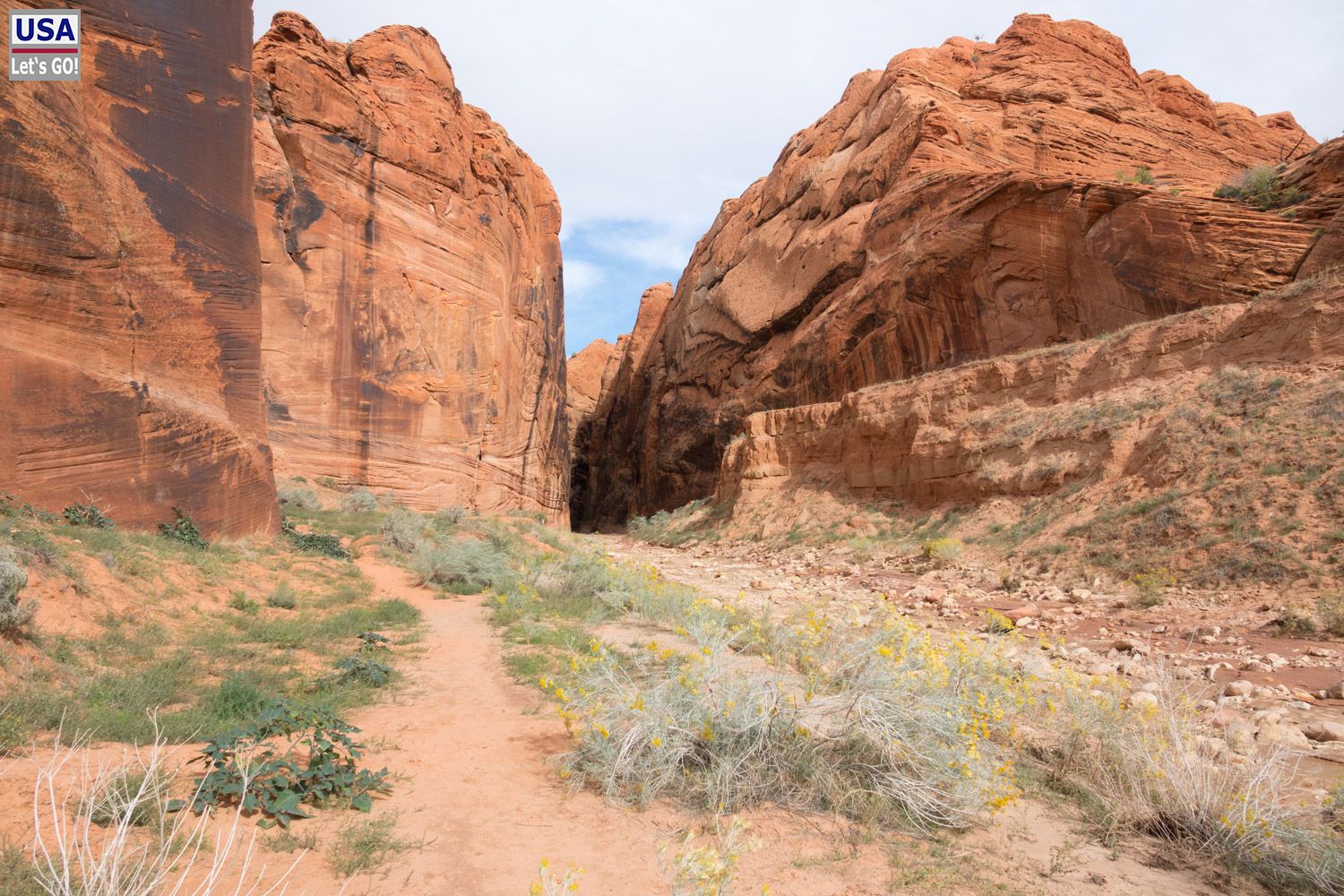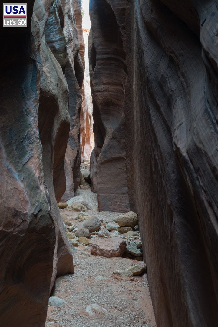 Während von links der Upper Buckskin Canyon einmündet, halte ich mich an der "T-Kreuzung" unmittelbar hinter dem Felsüberhang rechts (also gerade nicht in Blickrichtung des folgenden Bildes.)