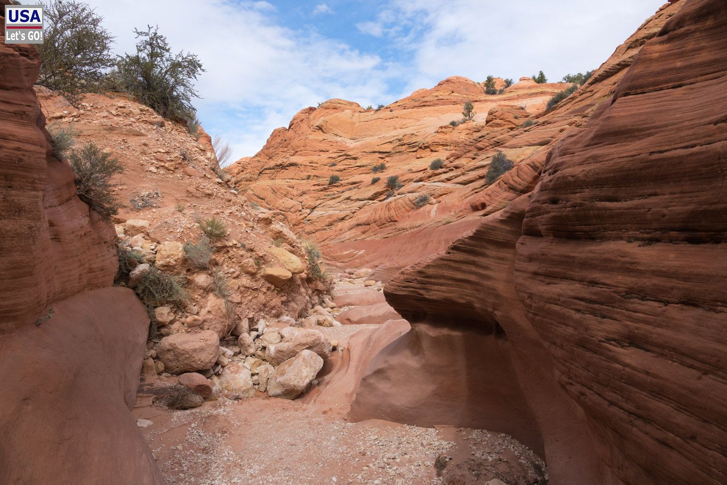 Leider ist beim Eingang des Buckskin Gulchs schon wieder Schluss. Den ersten Pool kann man noch mit Mühe passieren, dann aber sieht es so aus: