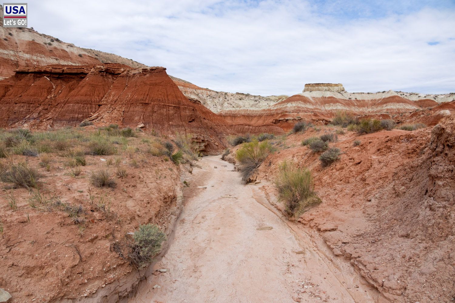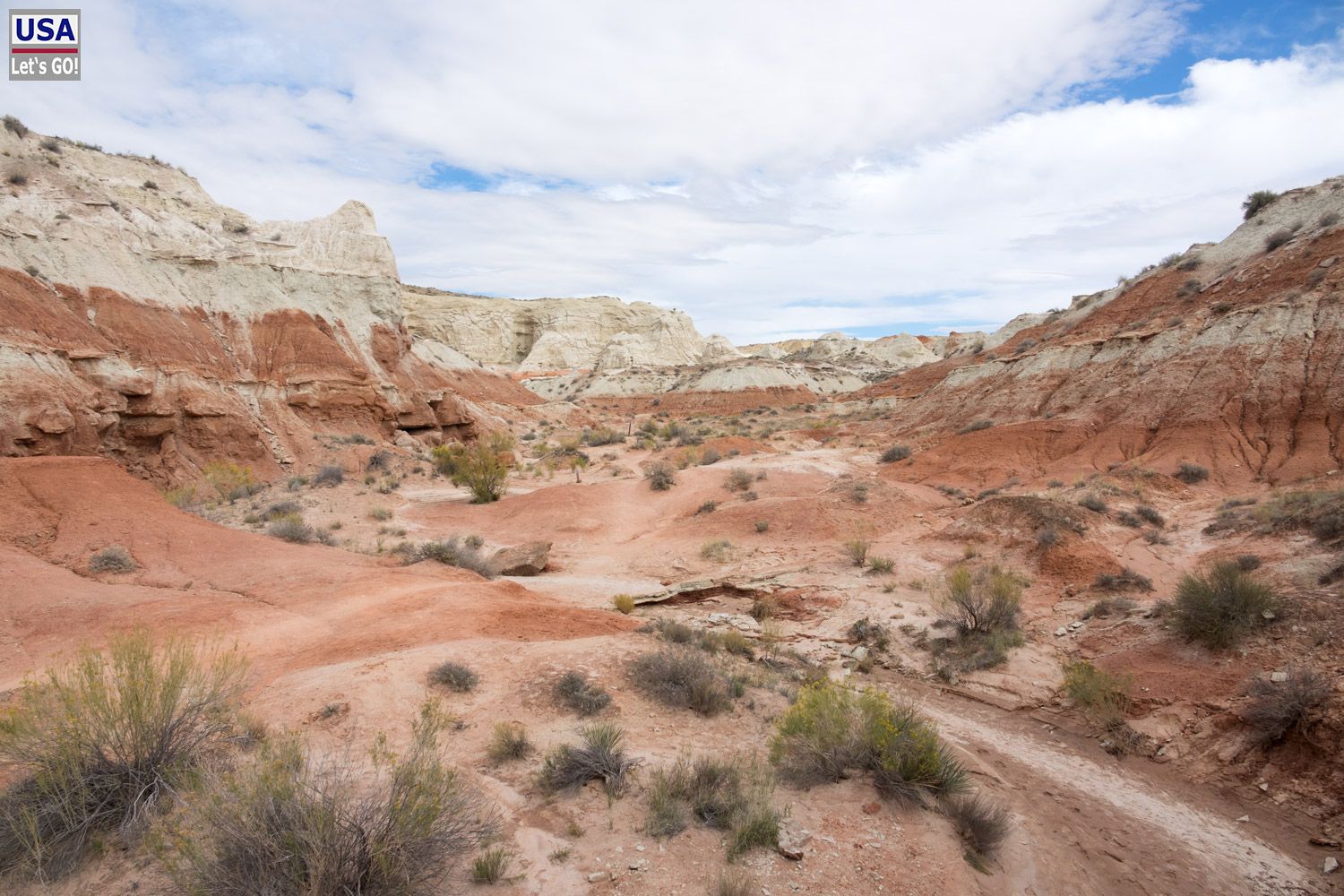 Ich folge den Fußspuren durch den Wash.