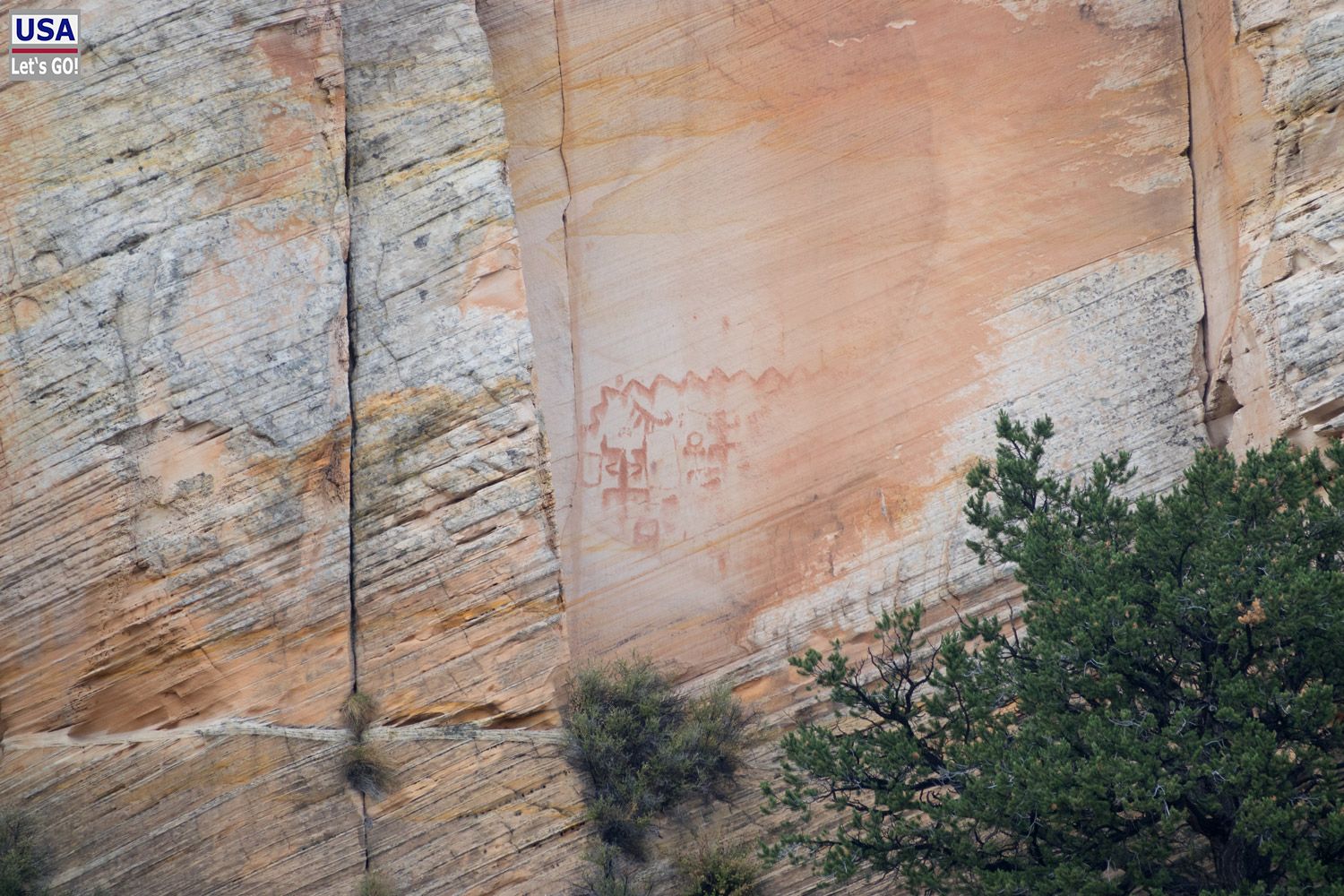 An einer Stelle halten wir an und Christian macht uns auf ein kleines Indian Rock Art Panel aufmerksam.
