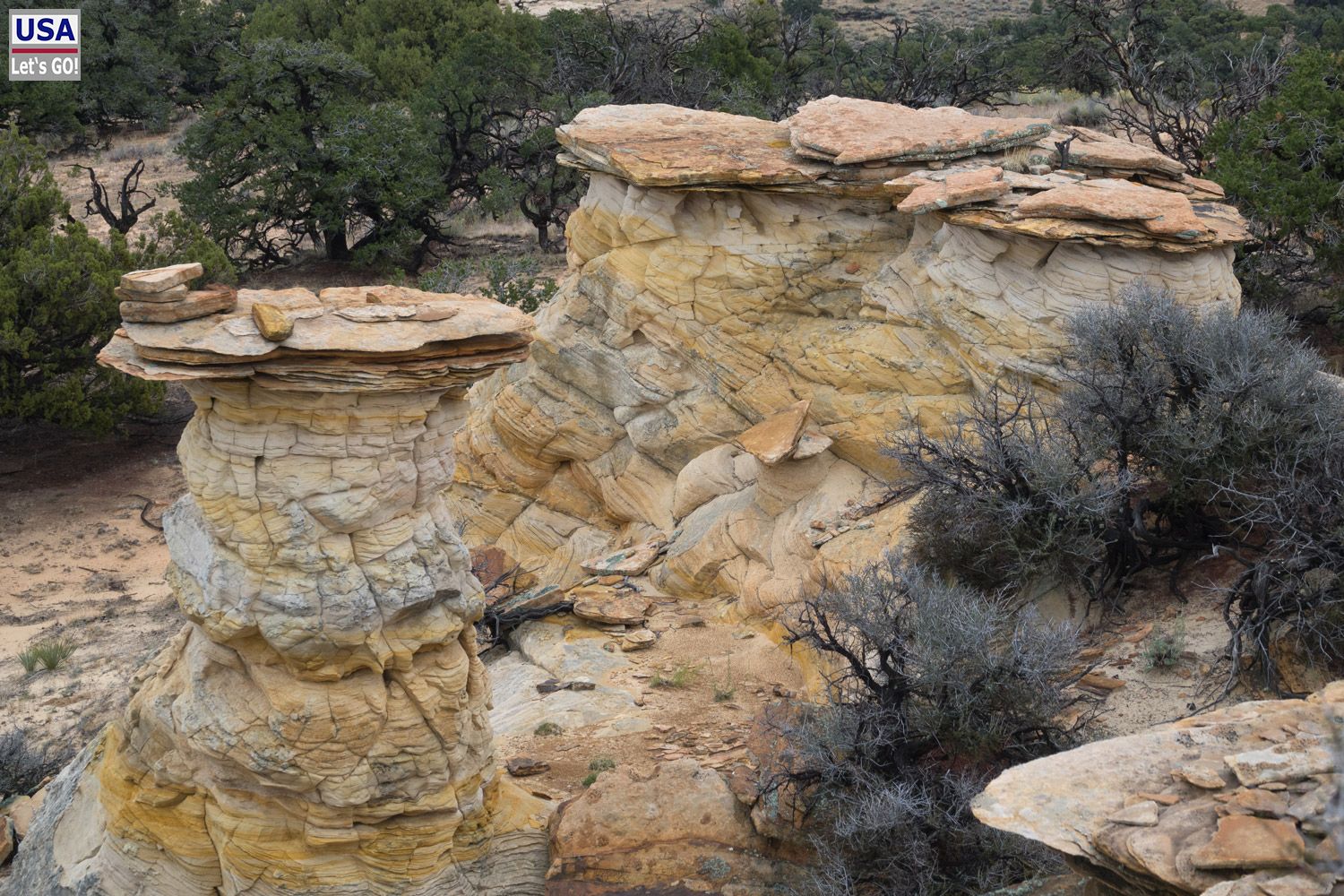 Bei den White Knolls steigen wir aus - mal sehen, ob wir etwas Indianisches finden. Erst mal nicht, dafür jede Menge interessante Felsformationen und Hoodoos.