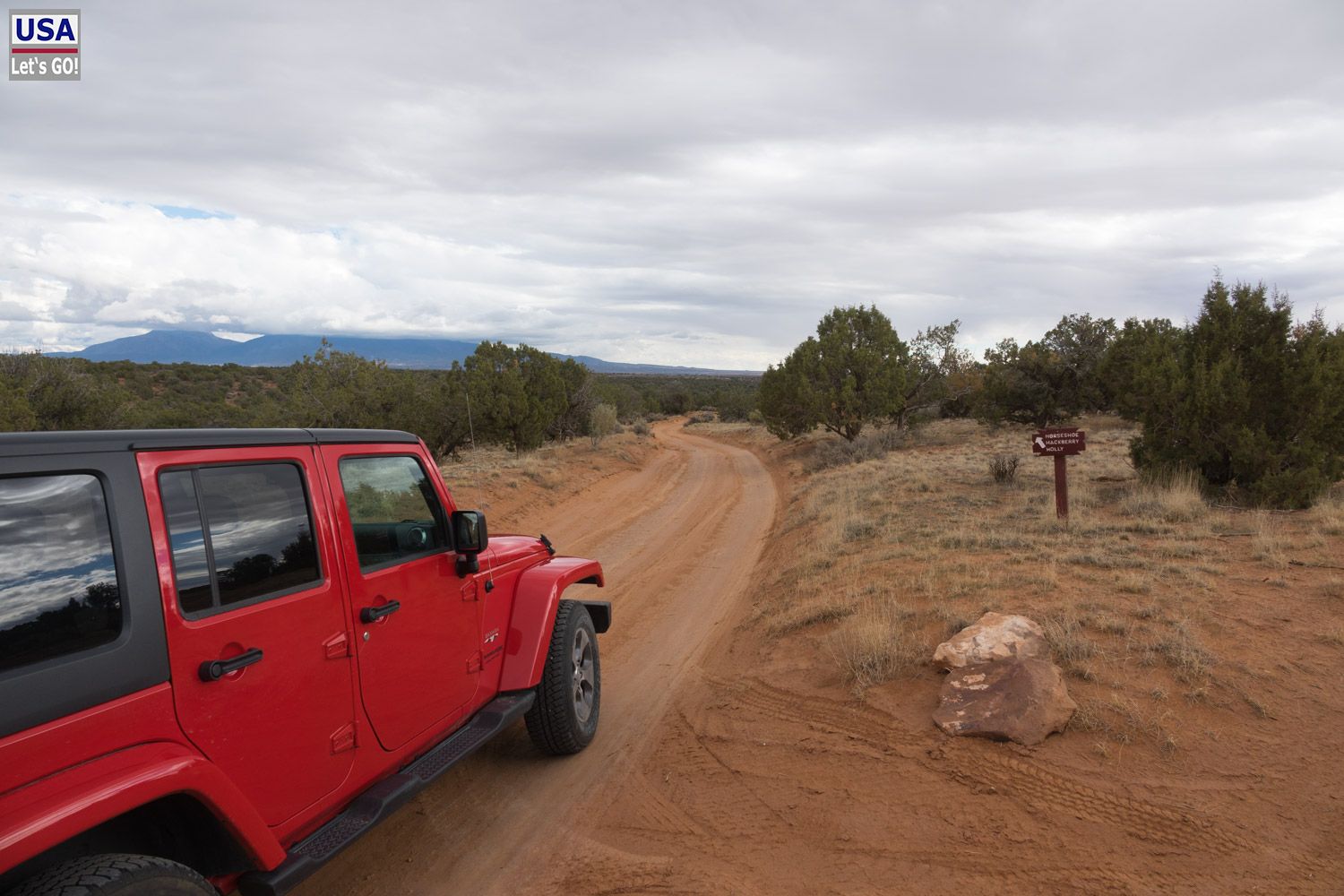 Egal, ich kehre um und fahre ganz langsam. Tatsächlich: Wo das Schild steht, muss ich rein. Gleich am Anfang ist eine riesige Megapfütze, und ich hoffe, dass die etwa zwei Meilen lange Straße überhaupt passierbar ist. Ist sie, stellenweise zwar ein wenig ausgewaschen, aber insgesamt völlig problemlos. High Clearance ist schon ganz angebracht, 4WD definitiv nicht erforderlich.