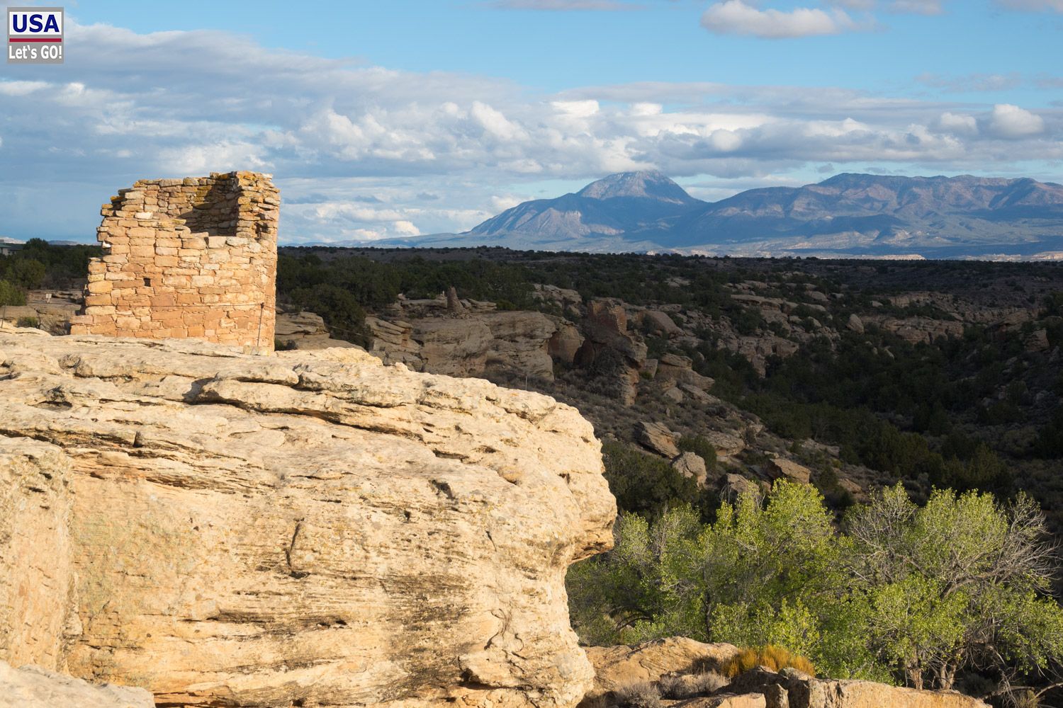 Fehlt natürlich noch die main unit: Square Tower. Auf dem Weg zurück klart es endlich auf. Die Sonne scheint sich durchzukämpfen. Am Horizont sieht man den Shiprock und den Sleeping Ute Mountain.