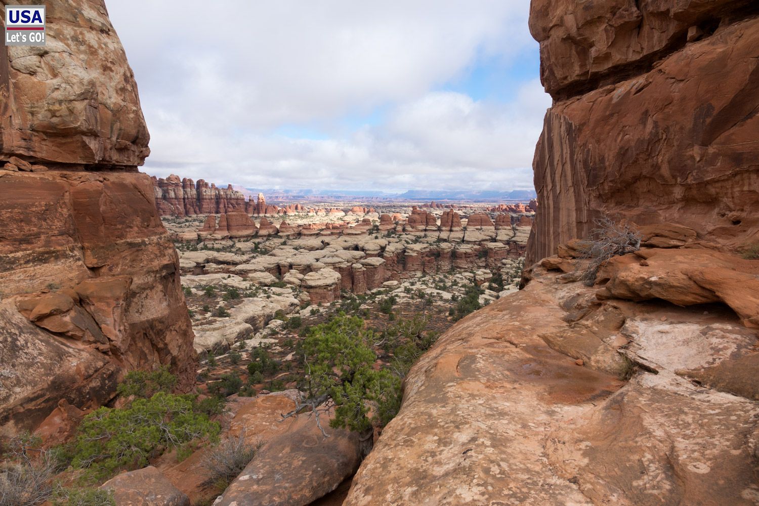 Im Westen kann man bis zu den Fins des Maze Districts sehen.