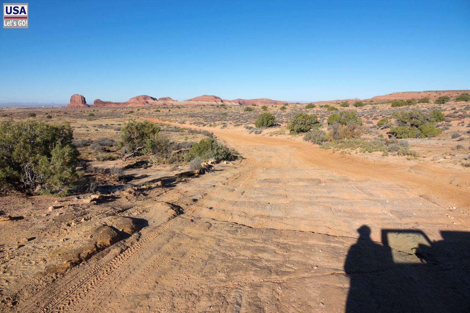 Zunächst geht es zur Secret Spire. Ich fahre nach Norden über die UT 161, von der die UT 313 links abgeht. Diese führt zum Dead Horse Point SP und zum Canyonlands NP. Nach 8,5 Meilen biege ich in die BLM 137, die am Lone Mesa Campground vorbeiführt. Bei Google Maps heißt die BLM 137 Secret Spire Safari Route.