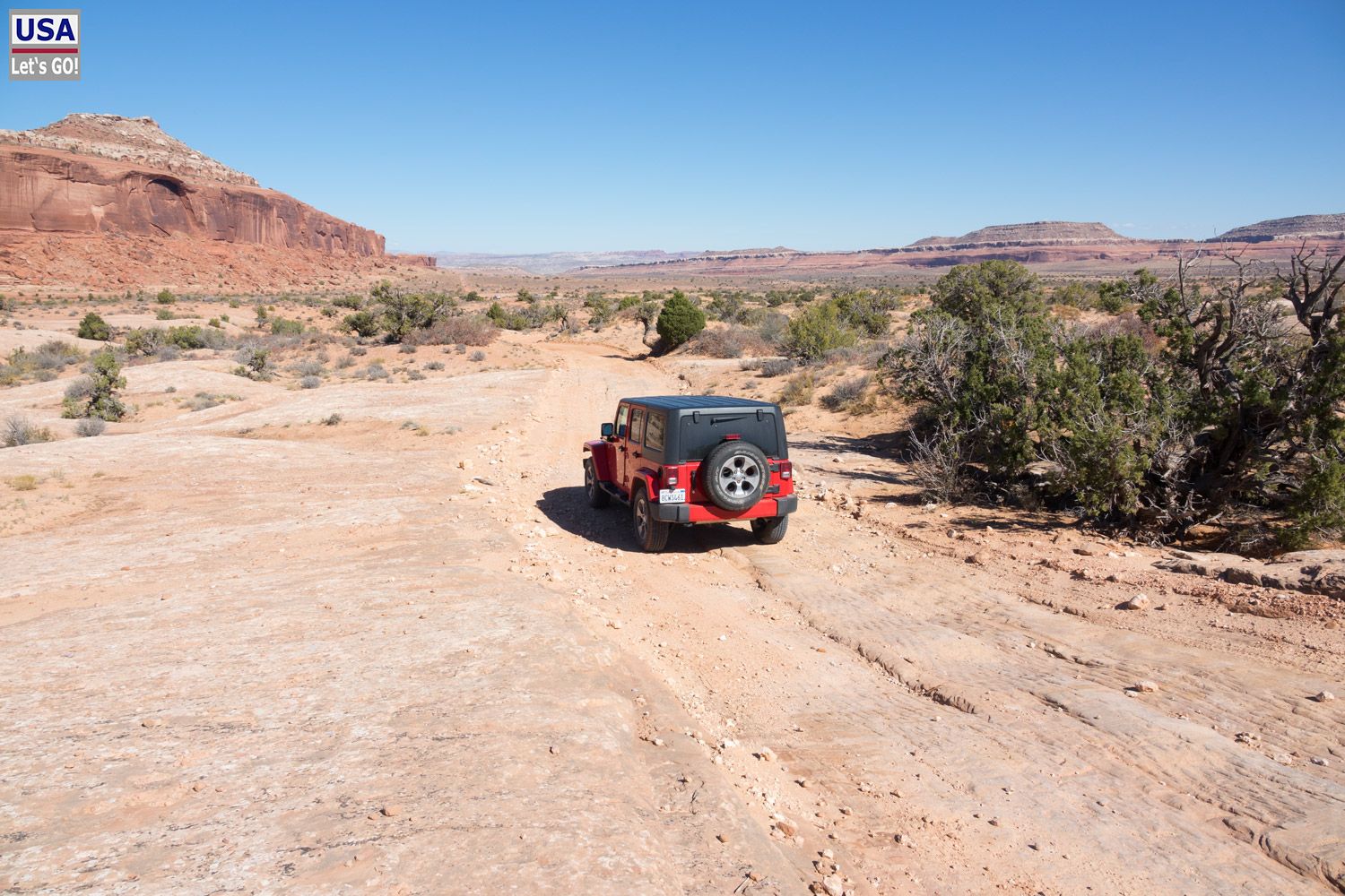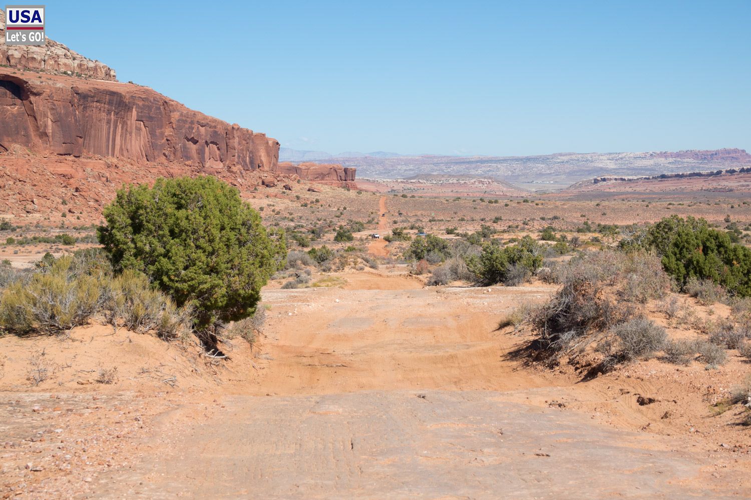 Was nun? Zurück auf der Island in the Sky Road mache ich erst mal Mittagspause. Donuts und Cola auf der Motorhaube, Karten raus und überlegen. Die Bartlett Road ist nicht weit - Neuland für mich. Könnte man ja mal machen. Gesagt, getan.