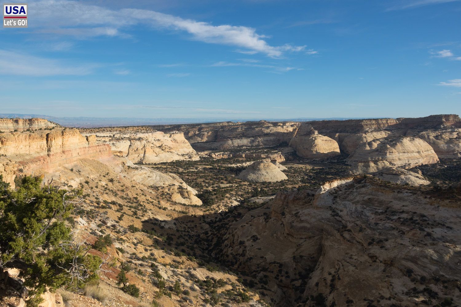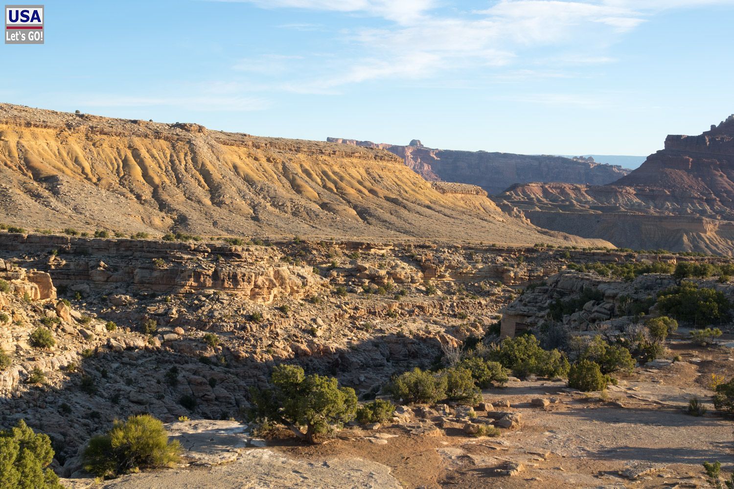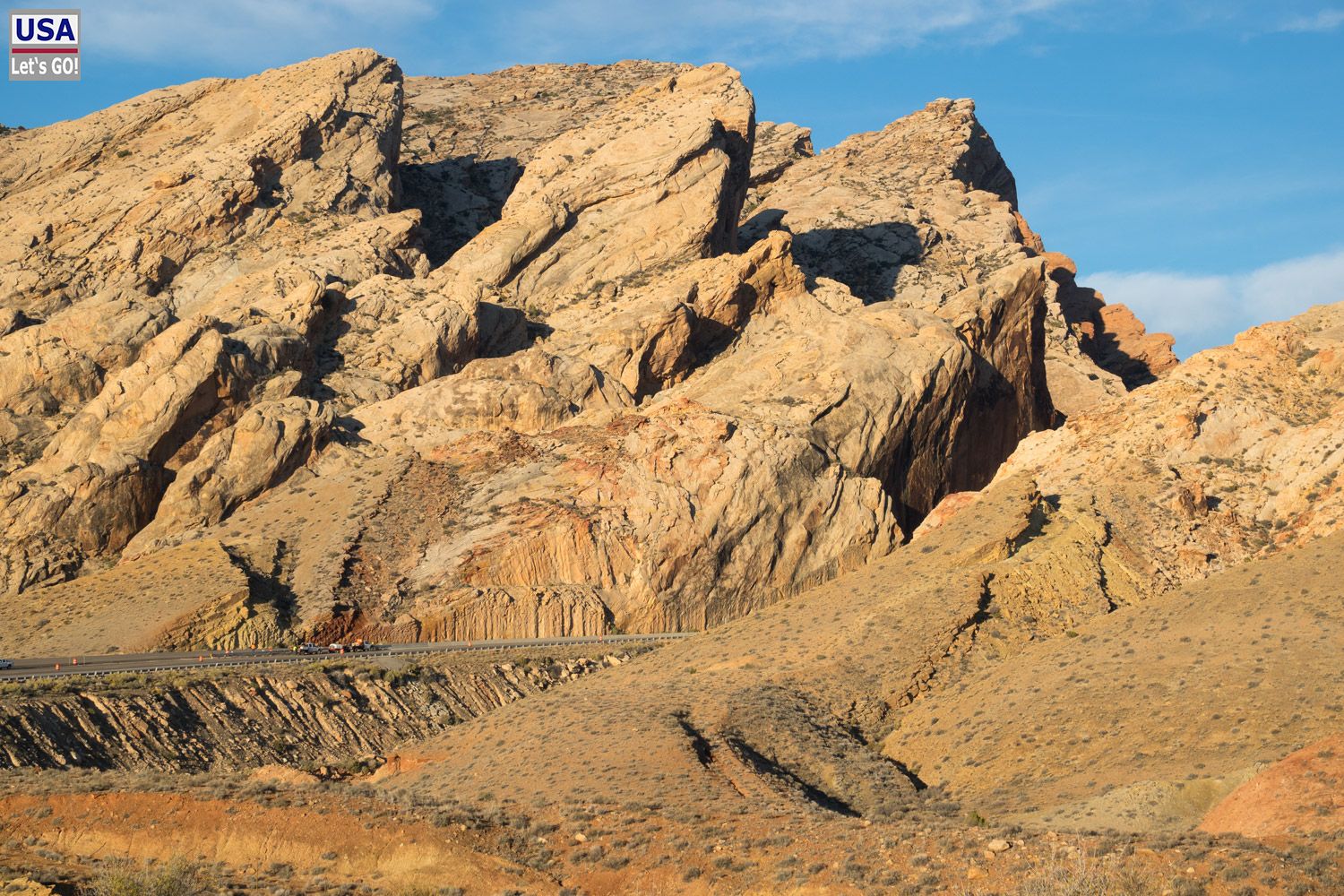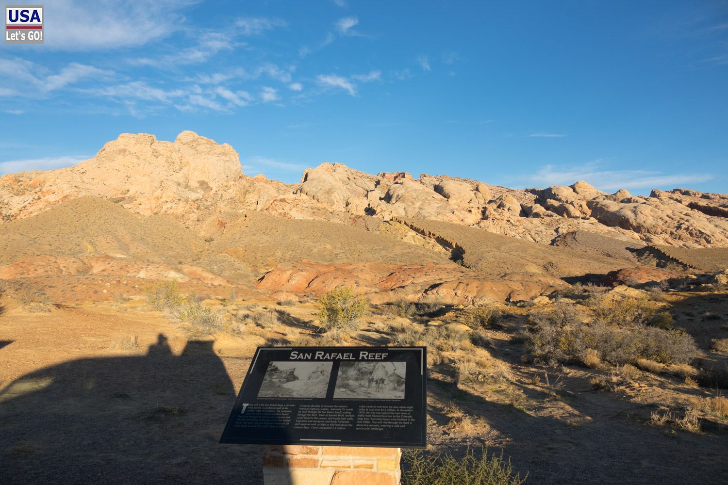Ich fahre die I70 Richtung Westen und mache an diversen Aussichtspunkten halt. Zunächst kommt die San Rafael View Area, wo die Interstate 70 in rechtem Winkel durch die San Rafael Cliffs schneidet.
