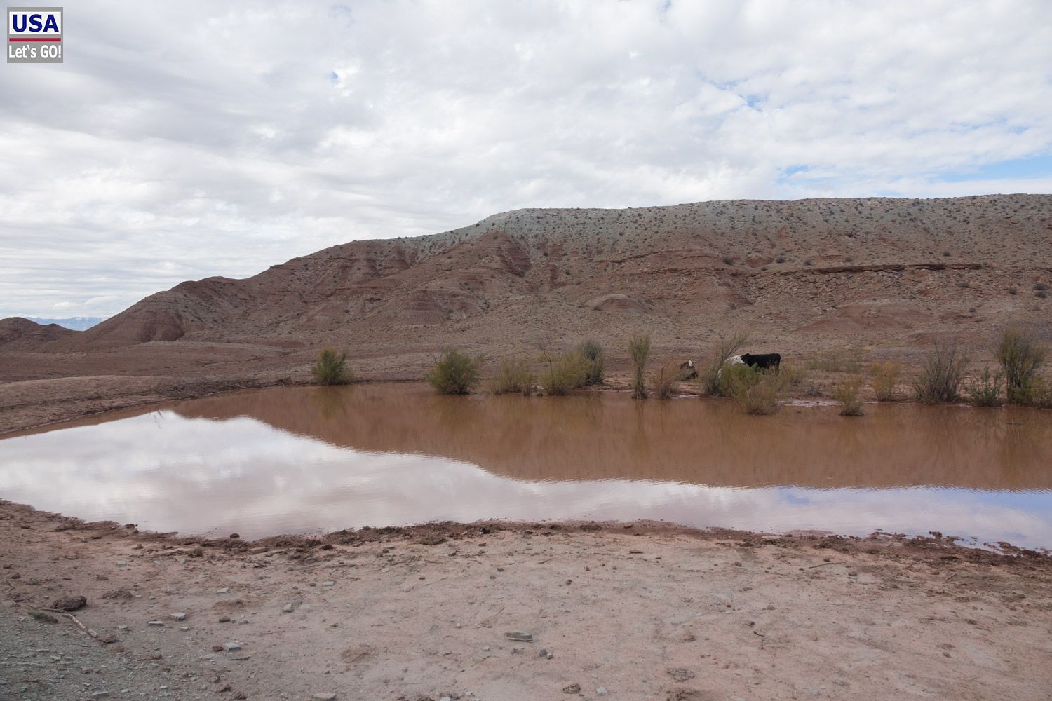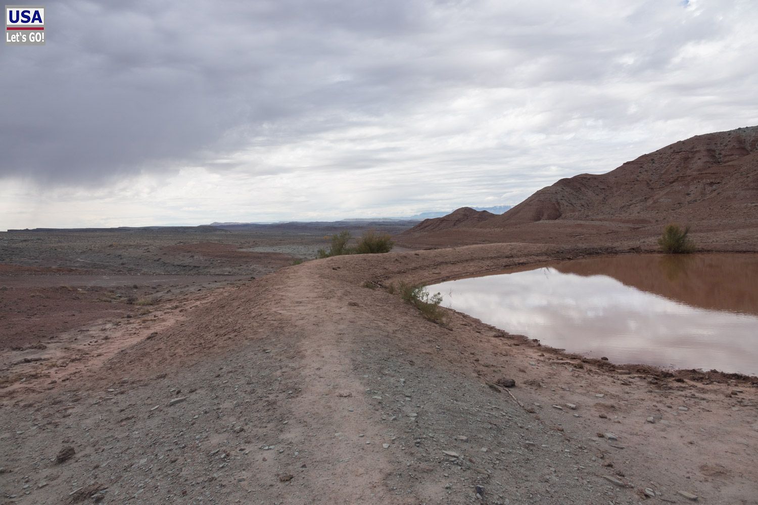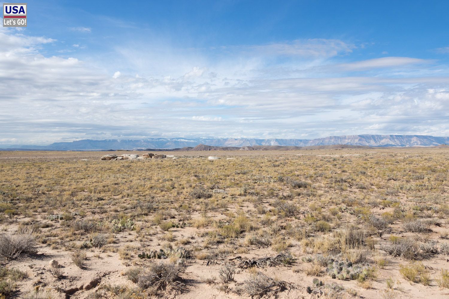 Rückzug. Und siehe da: Ich finde die Abzweigung, die 3,1 Meilen südlich der White Rocks nach Osten führt. (Von mir aus gesehen nun rechts, eigentlich links.) Diese ist nicht mehr als ein schmaler Feldweg. Noch 200, vielleicht 300 Meter und ich stelle den Wagen ab. Dahinter kommt eine Felsplatte, über die man fahren könnte, aber mir ist das zu rumpelig.