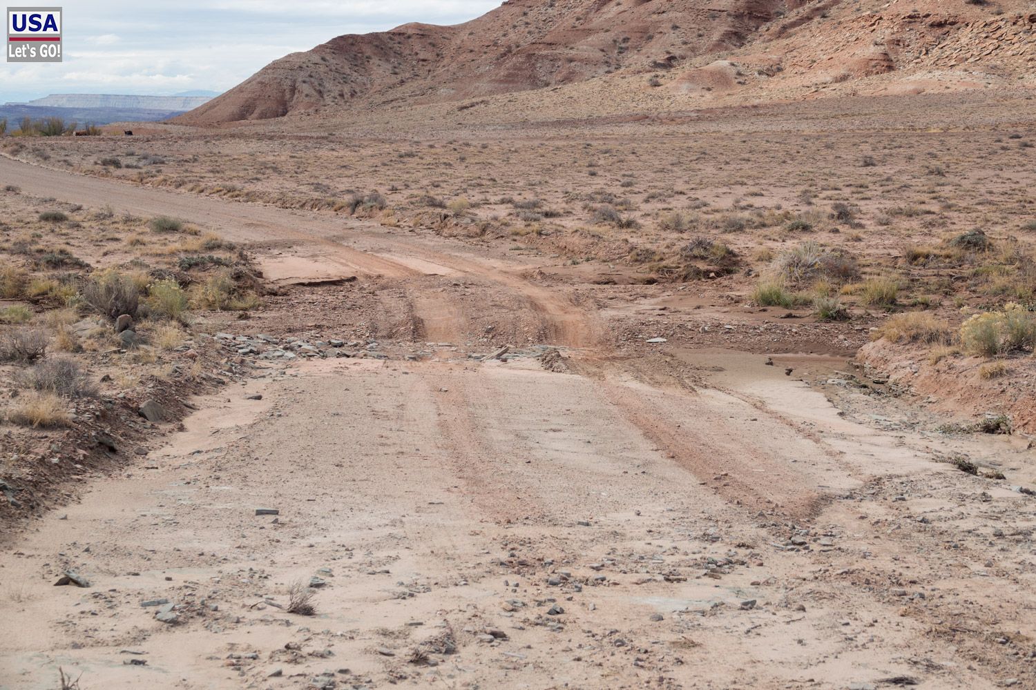 Die Straße wird immer rauer. Ein ziemlich rumpeliger Wash - bin ich hier noch richtig?