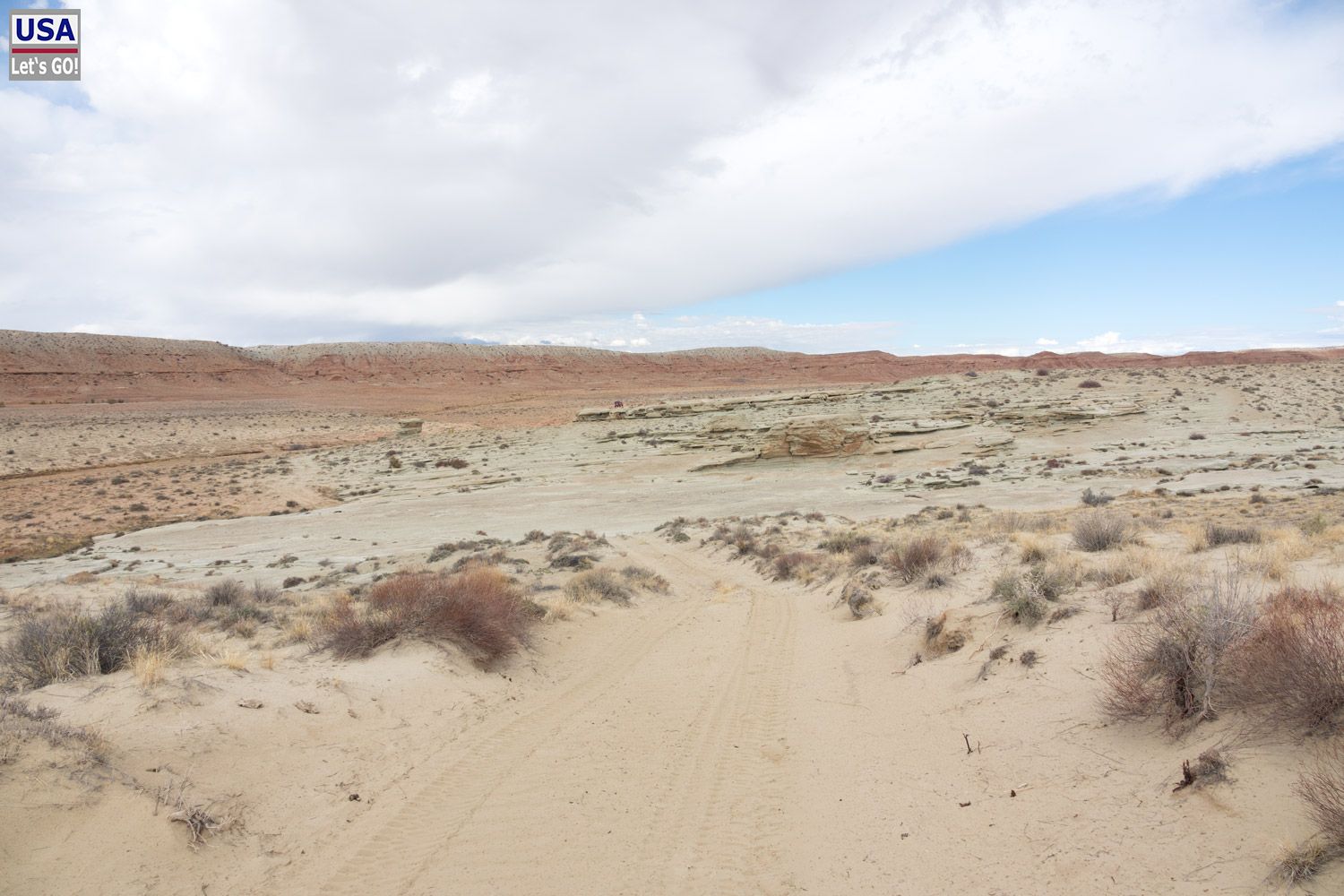 Hinter dem Slickrock-Plateau führt eine Jeep-Spur weiter in die Einsamkeit. Ich folge dieser eine Weile.