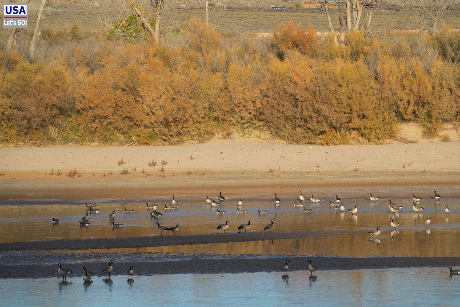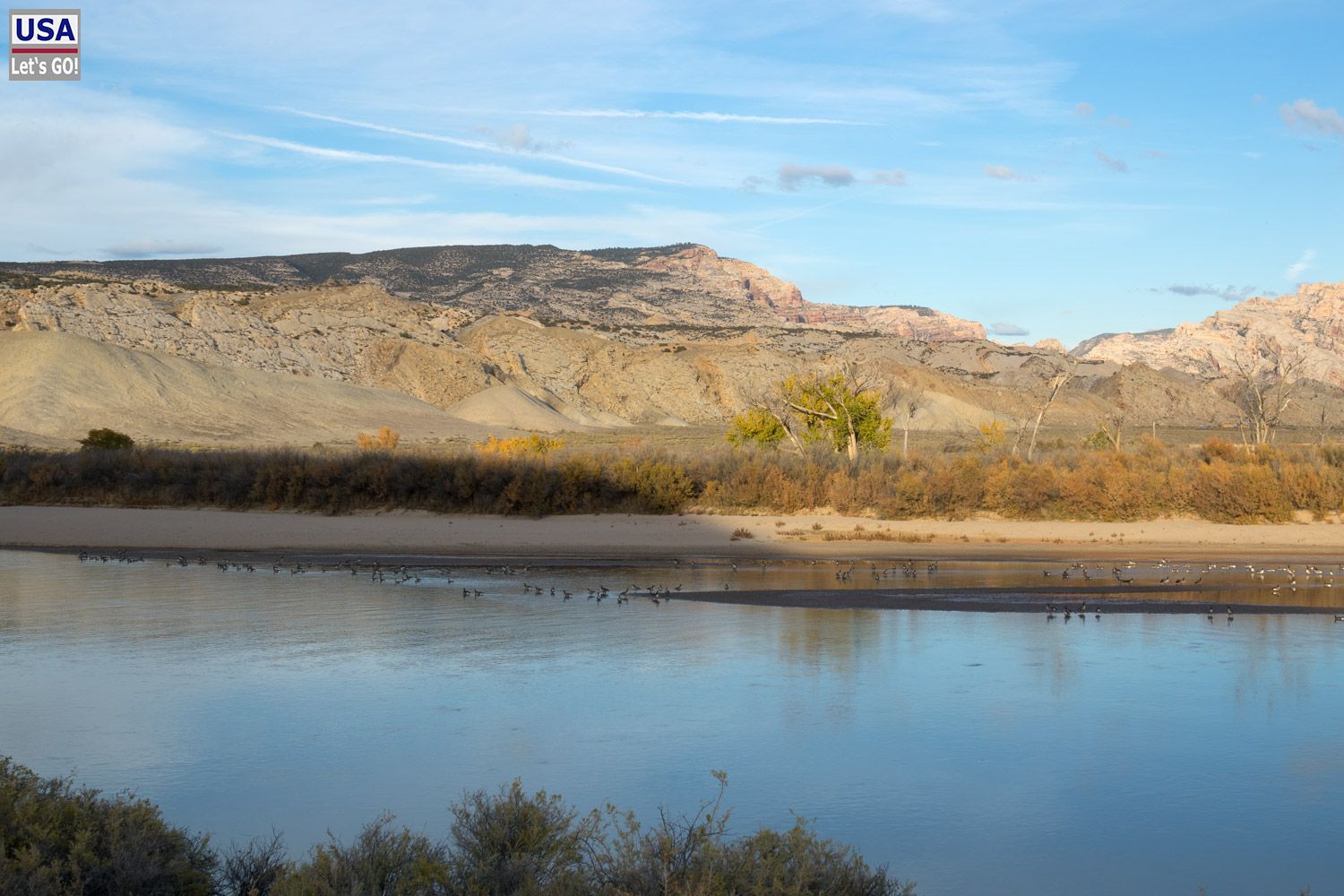 Kaum habe ich ca. 20 Minuten später die Parkgrenze überschritten, geht auch schon das Fotografieren los - das Licht ist einfach zu gut. Zunächst ein paar Bilder vom im Abendlicht ganz ruhig daliegenden Green River.