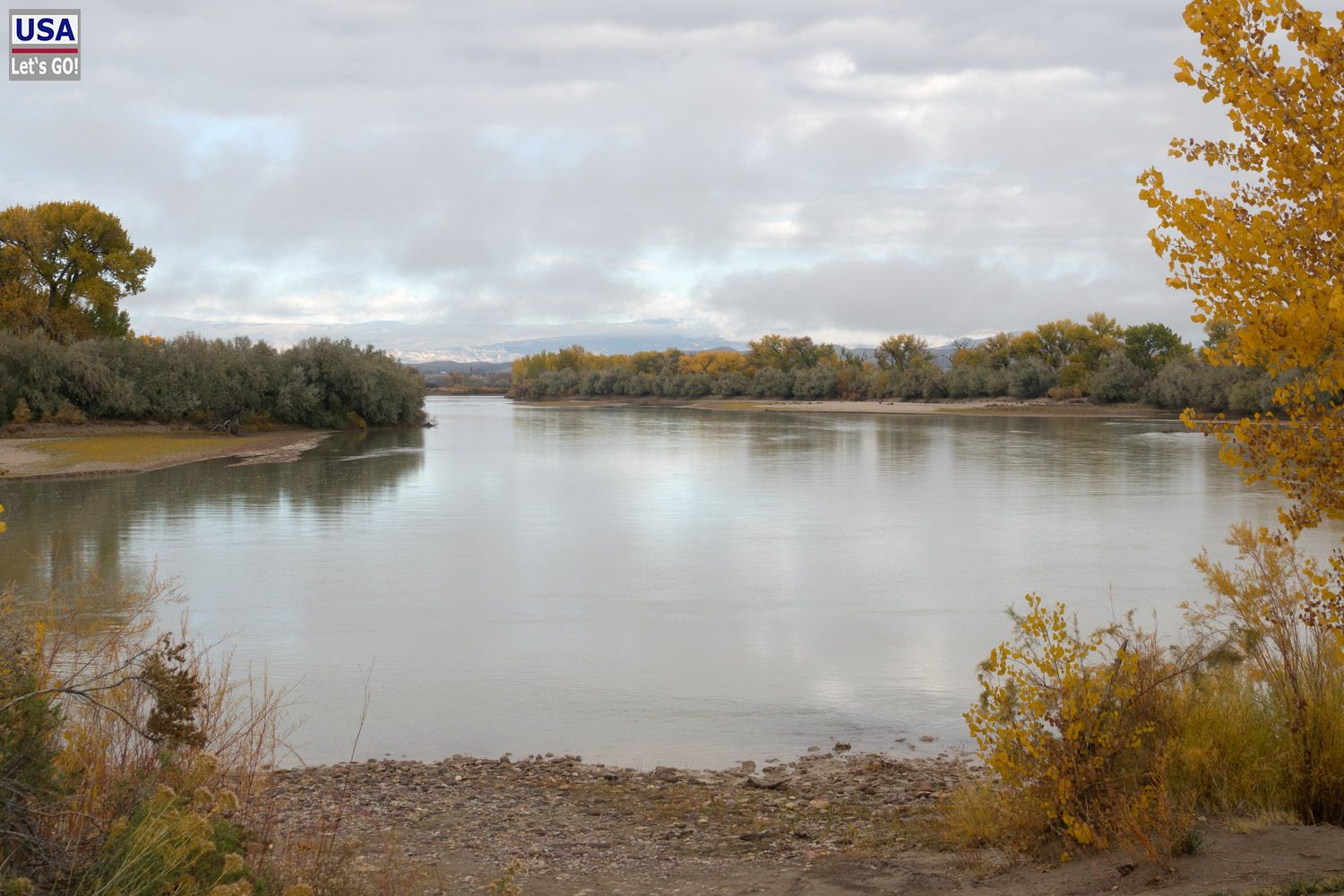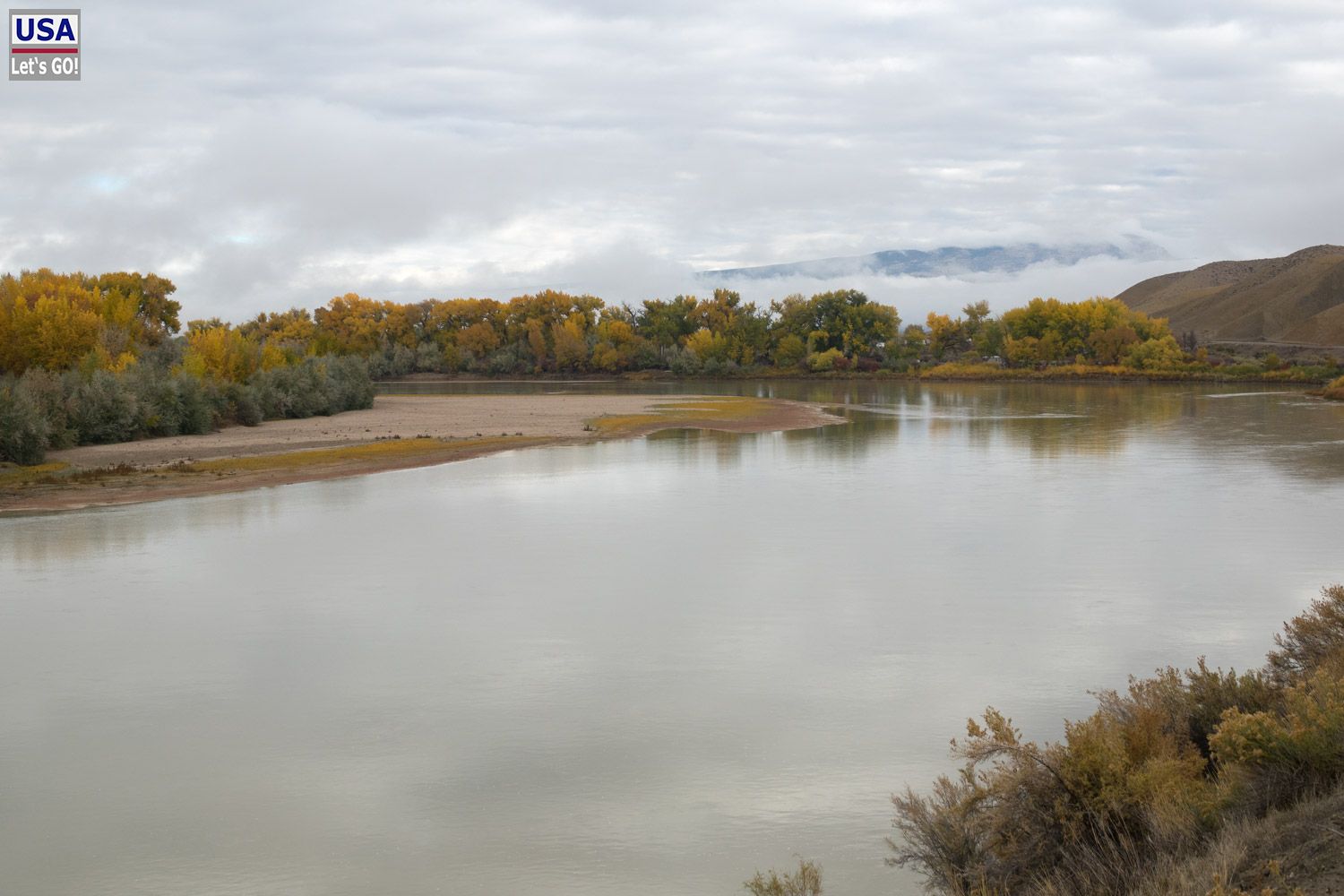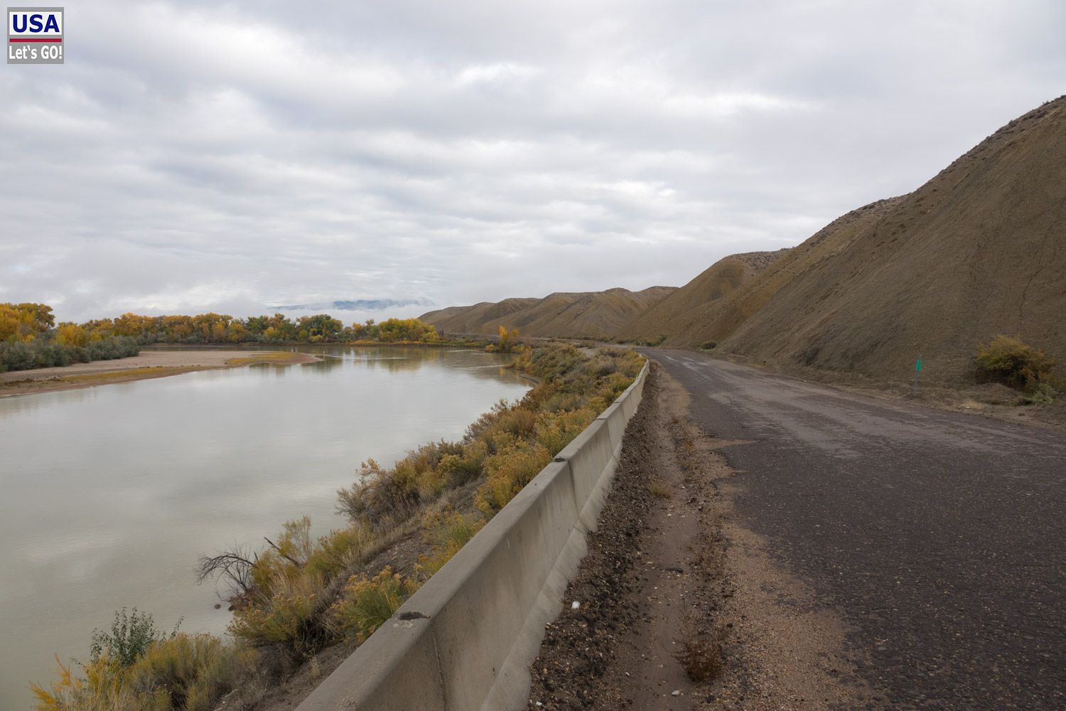 Also einmal drehen bitte und retour das Ganze. Jetzt ist es aber kürzer, über ganz kleine Straßen zu fahren, wie mir das Navi anzeigt. So komme ich in den Genuss einer sehr kleinen Straße, die mit Schlaglöchern übersät ist, abschnittsweise nicht-asphaltiert zudem, dafür aber idyllisch am Green River entlangführt. Hier ist es auch nicht mehr neblig.
