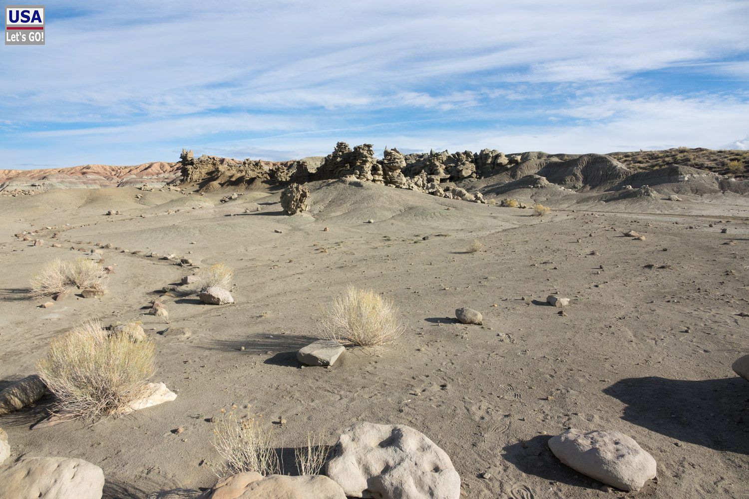 Ich stoße auf die UT 45, der ich ein Stückchen nach Norden folge, bis es links ab geht auf die Glen Bench Road. (Von dieser Seite ist der Fantasy Canyon ab der Glen Bench Road übrigens nicht ausgeschildert.) Argwöhnisch betrachte ich den Himmel - genau da, wo der Fantasy Canyon sein muss, sind Schleierwolken ohne Ende. Toll.