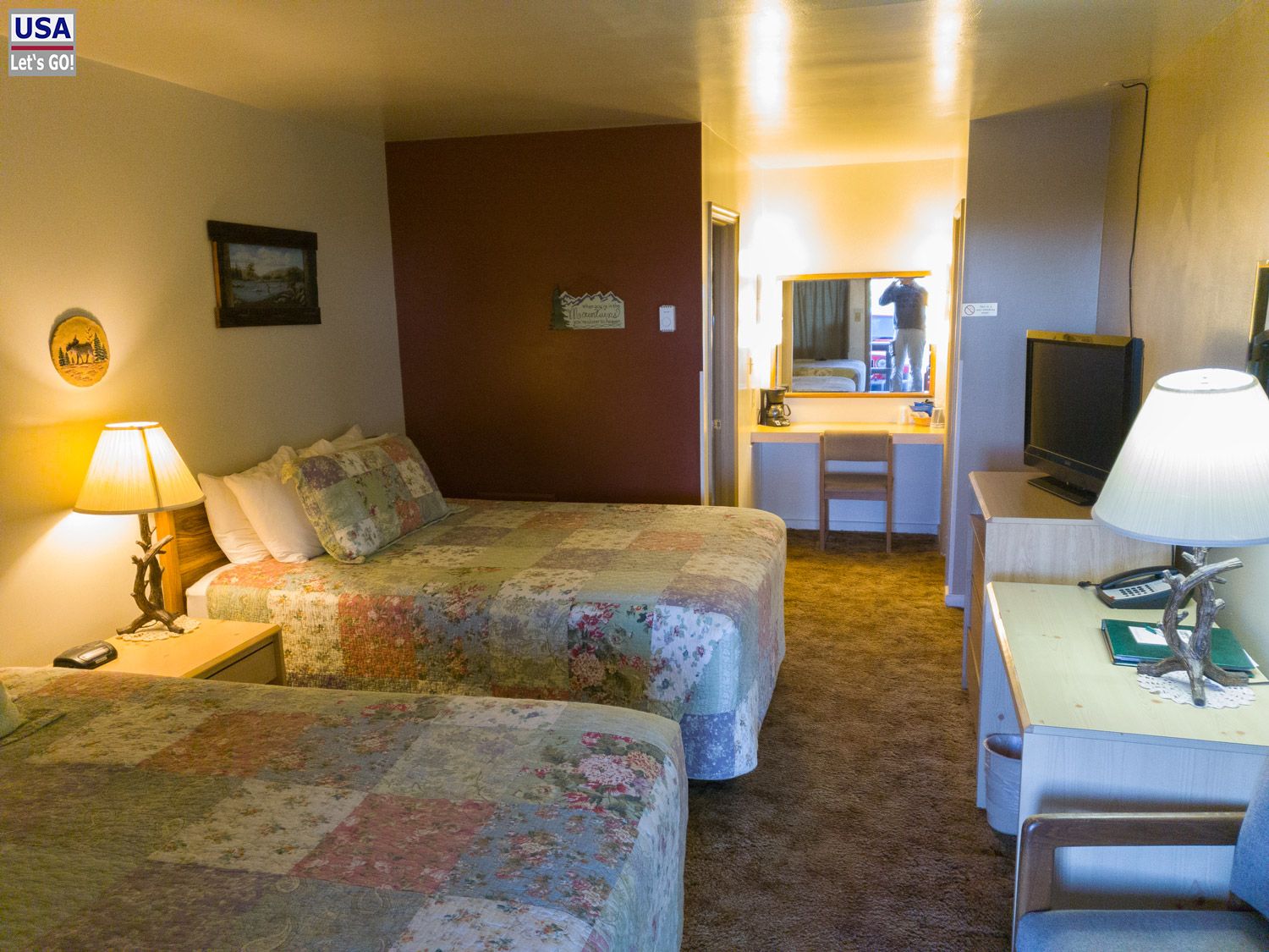 Dort land ich dann wenig später und beziehe eine Cabin im Reihenhausstil, die sehr rustikal eingerichtet, dabei aber wunderbar gepflegt und sauber ist. Nur das Internet ist so schwachbrüstig, dass man es nur unten im Lobby-Bereich verwenden kann. Aber macht nichts, ich kann auch mal einen Abend ohne.