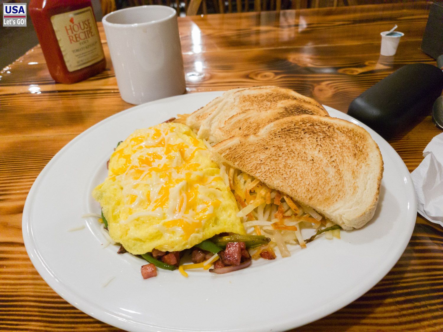 Nach einer heißen Dusche ist das morgendliche Denver Omelett genau so klasse wie das Abendessen gestern. Auch die Bedienung ist klasse. Ein Tisch weiter sitzt Danny, ein kauziger Typ mit einer herrlichen Stimme. "You serve me so good!", flötet er. Und sie nennt ihn "honey" und weiß mit ihm umzugehen. Mich nennt sie natürlich auch "honey" - so was passiert einem in Amerika öfters. Und ihre Kollegin nennt sie "sunshine". Irgendwie charmant.