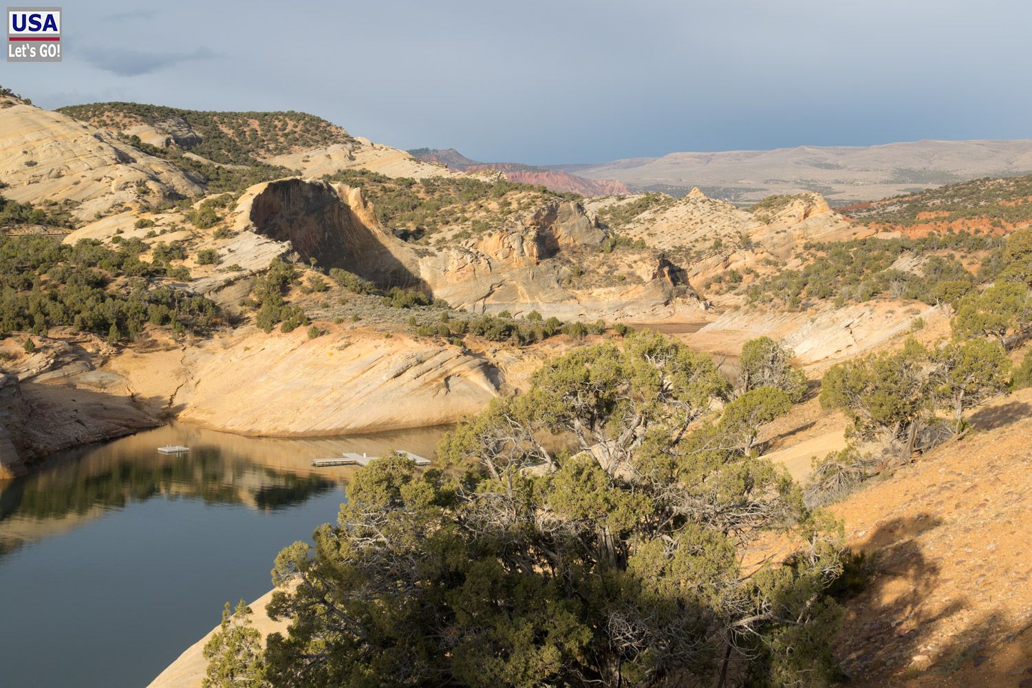 Wenigstens komme ich so noch mal in den Genuss eines schönen morgendlichen Anblicks des Red Fleet Reservoirs.