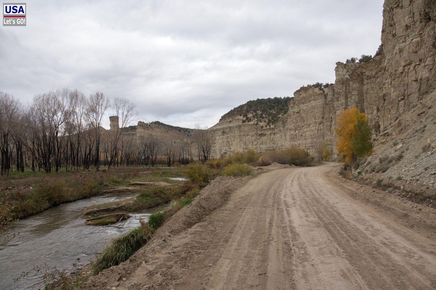Die Strawberry River Road führt am gleichnamigen River entlang - welch ein blumiger Name. Es geht über Asphalt und durch Farmland, bis hinter einer Kurve die letzte Ansiedlung steht und der Asphalt in gegradeten gravel übergeht. Fahrtechnisch überhaupt kein Problem. Das schafft jeder Straßen-PKW.