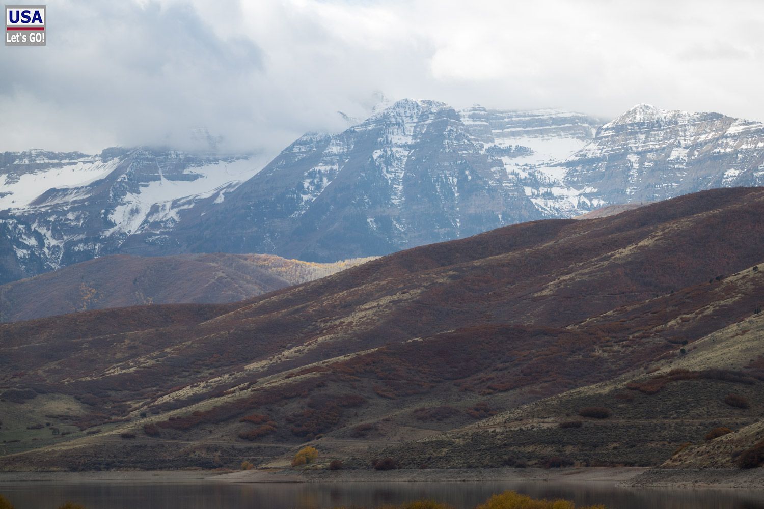Ich fahre durch das hübsche, wohlhabend erscheinende Midway, und weiter die UT 189 nach Süden, immer am Deer Creek Reservoir entlang mit der schneebedeckten Wasatch Range im Hintergrund.